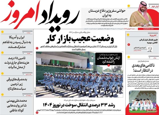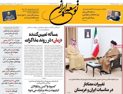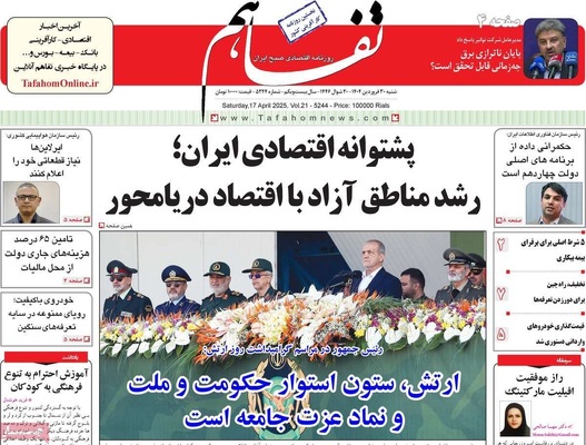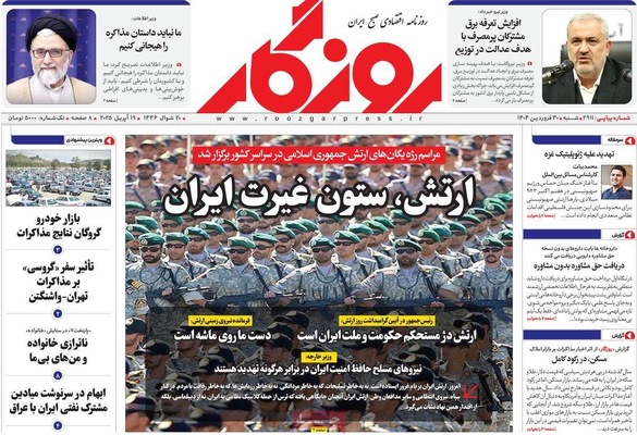 صفحه نخست روزنامههای شنبه ۳۰ فروردین ۱۴۰۴ را که به دیپلماسی به وقت تهران، نمایش اقتدار ارتش، مذاکرات دماسنجِ بازار و مهمترین رویدادهای ورزشی پرداختهاند؛ در ادامه مشاهده میکنید.