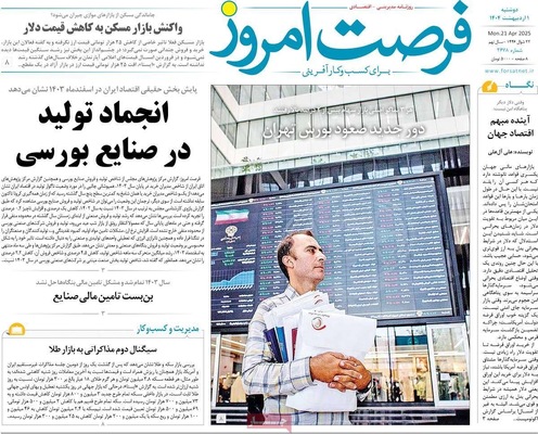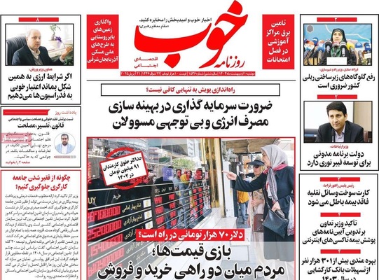 صفحه نخست روزنامههای دوشنبه ۱ اردیبهشت ۱۴۰۴ را که به روزهای سبز بورس، وحدت پشتوانه عزت خارجی، ایران پیشتاز درمان ناباروری و مهمترین رویدادهای ورزشی پرداختهاند؛ در ادامه مشاهده میکنید.