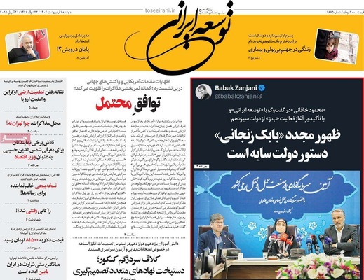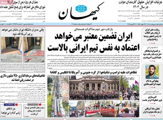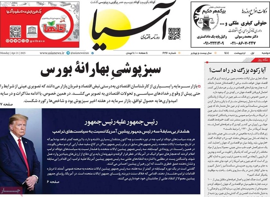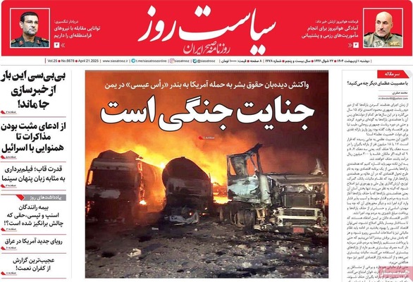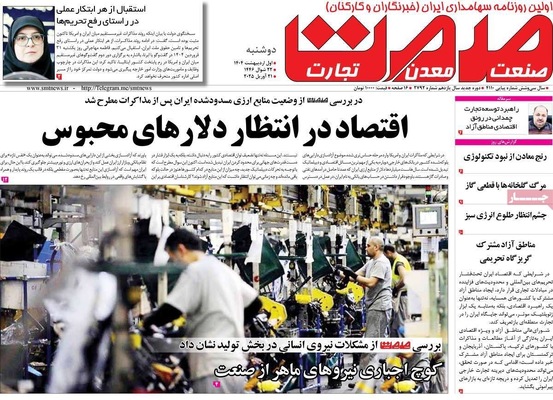 صفحه نخست روزنامههای دوشنبه ۱ اردیبهشت ۱۴۰۴