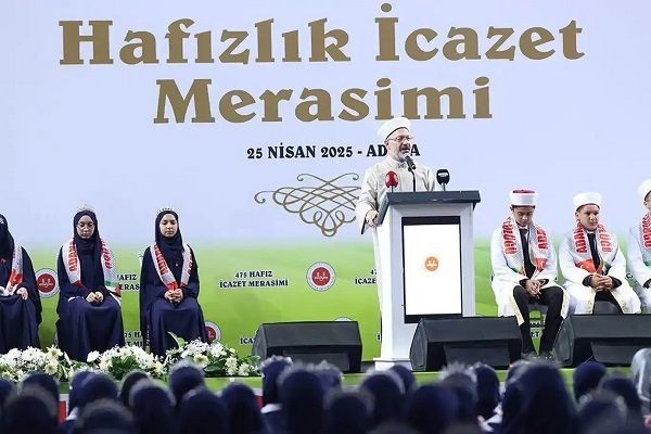 سازمان امور دینی ترکیه طی مراسمی در شهر «آدانا»ی این کشور 475 مدرک حفظ قرآن به حافظان قرآن دختر و پسر اهدا کرد.