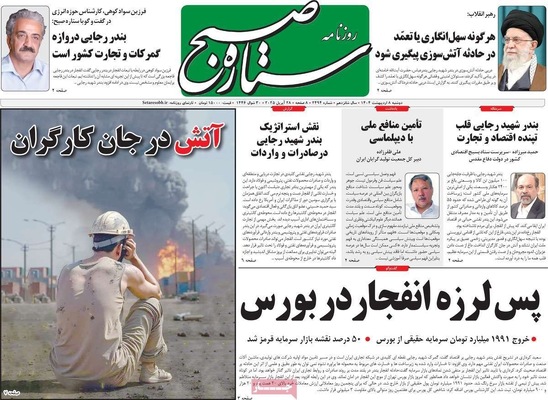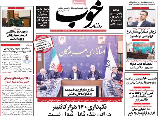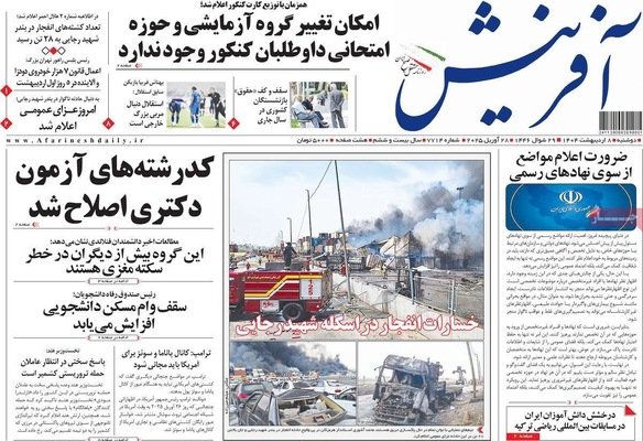 صفحه نخست روزنامههای دوشنبه ۸ اردیبهشت ۱۴۰۴ را که به ایران در عزای بندر، آتش همدلی گرمتر بود، بارانداز شایعه و مهمترین رویدادهای ورزشی پرداختهاند؛ در ادامه مشاهده میکنید.