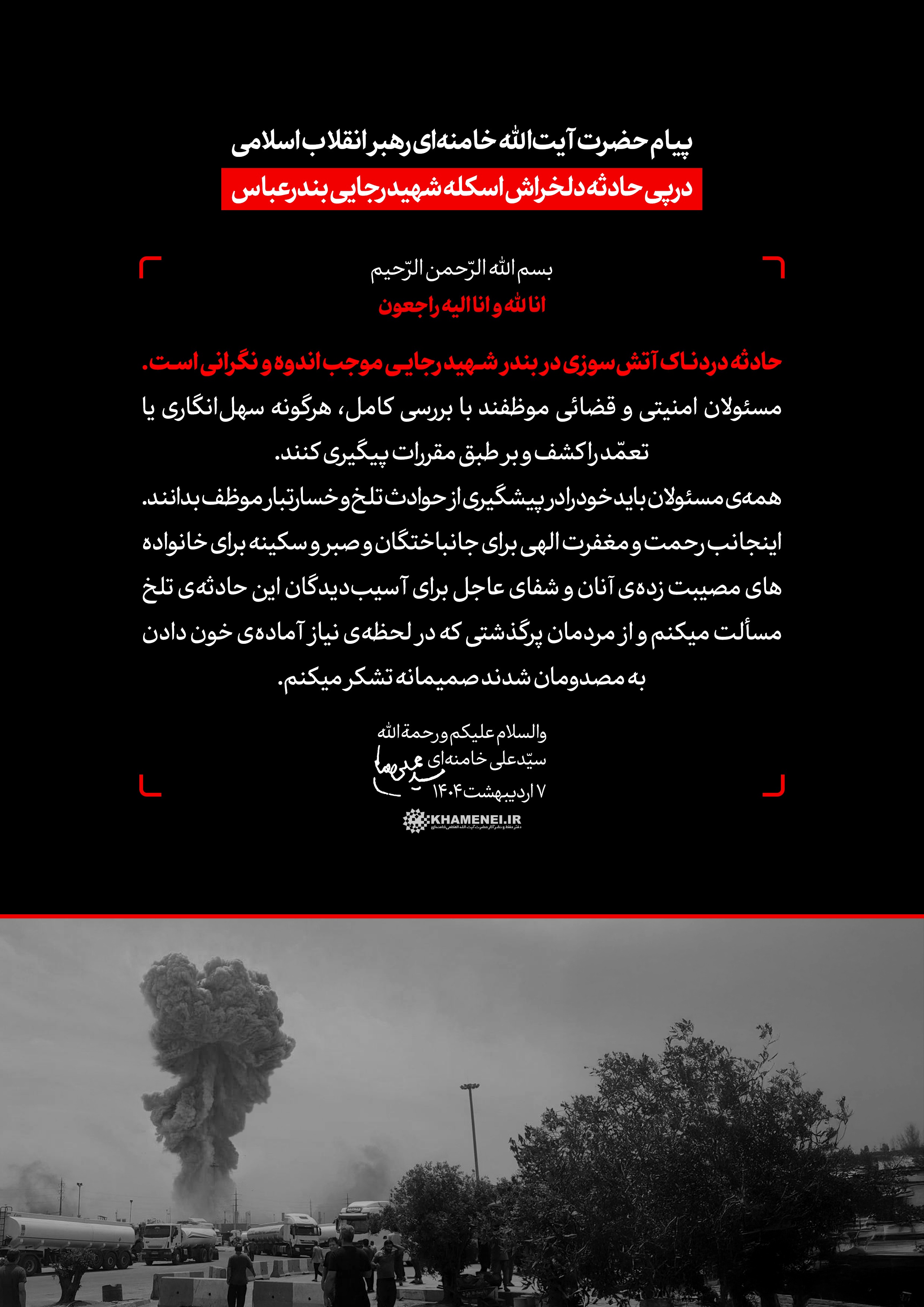 پیام رهبر معظم انقلاب در پی حادثه بندر شهید رجایی