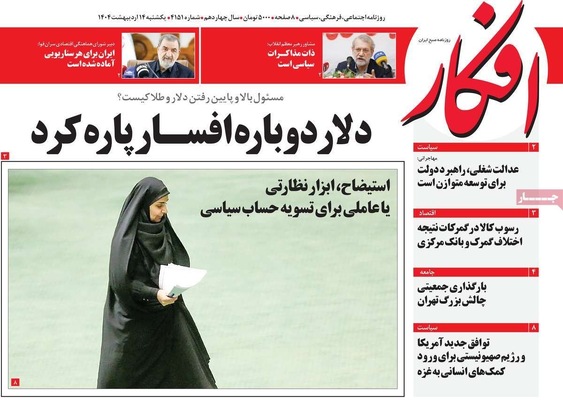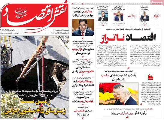 صفحه نخست روزنامههای یکشنبه ۱۴ اردیبهشت ۱۴۰۴