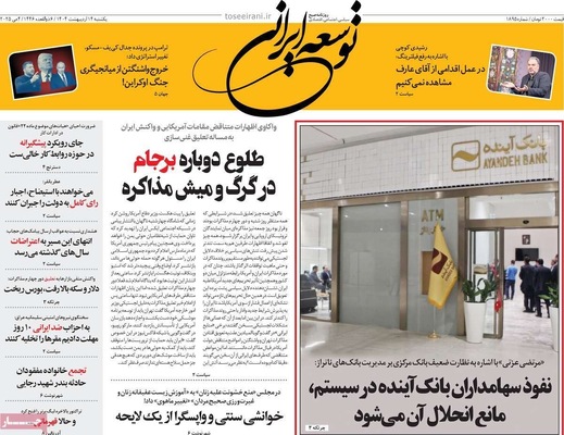 صفحه نخست روزنامههای یکشنبه ۱۴ اردیبهشت ۱۴۰۴ را که به واکنش بازارها به تعویق مذاکرات، راز ایستادگی پای غنیسازی، غزه بدون غذا و مهمترین رویدادهای ورزشی پرداختهاند؛ در ادامه مشاهده میکنید.