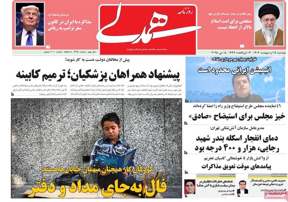 صفحه نخست روزنامههای دوشنبه ۱۵ اردیبهشت ۱۴۰۴