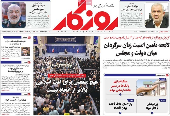 صفحه نخست روزنامههای دوشنبه ۱۵ اردیبهشت ۱۴۰۴ را که به ماهیت سیاسی حج، ضرب شصت یمنی، ترکش تنش به بازار و مهمترین رویدادهای ورزشی پرداختهاند؛ در ادامه مشاهده میکنید.