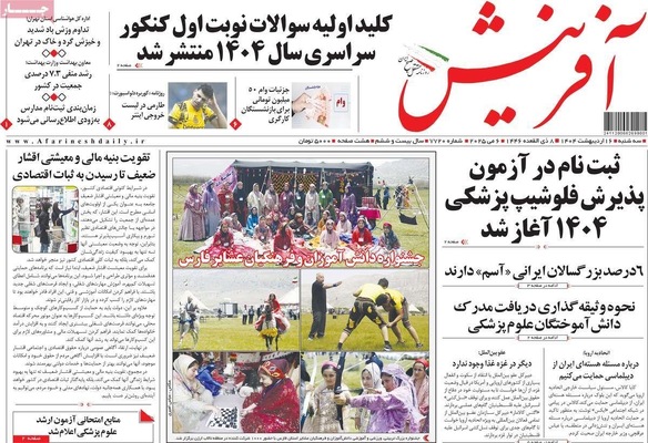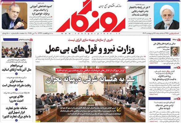 صفحه نخست روزنامههای سهشنبه ۱۶ اردیبهشت ۱۴۰۴