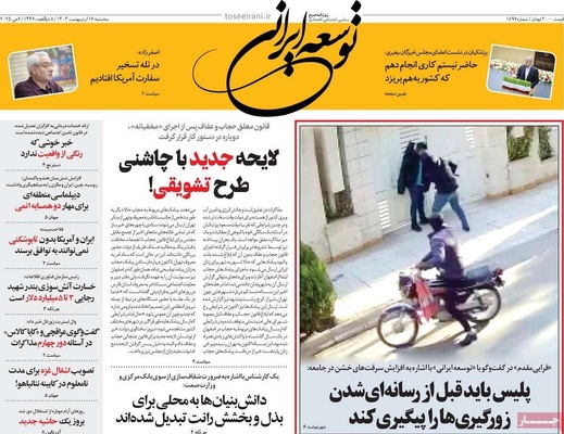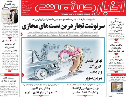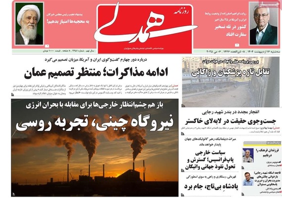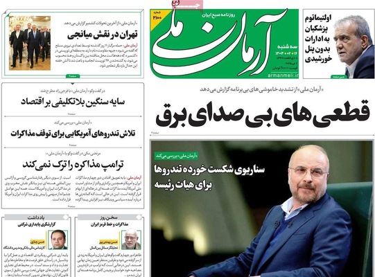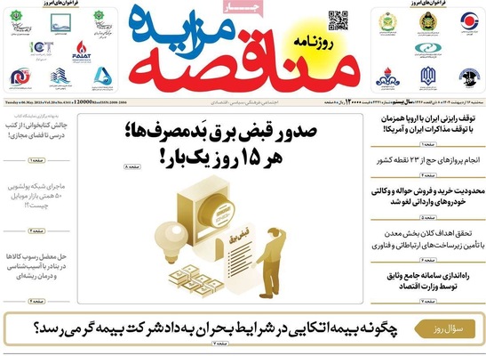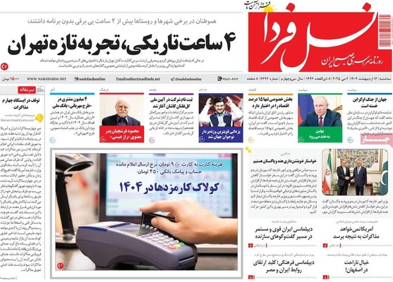 صفحه نخست روزنامههای سهشنبه ۱۶ اردیبهشت ۱۴۰۴ را که به قطعیهای بیصدای برق، پشت پرده رسوب کالا در بنادر، شمارش معکوس برای از سرگیری مذاکرات و مهمترین رویدادهای ورزشی پرداختهاند؛ در ادامه مشاهده میکنید.