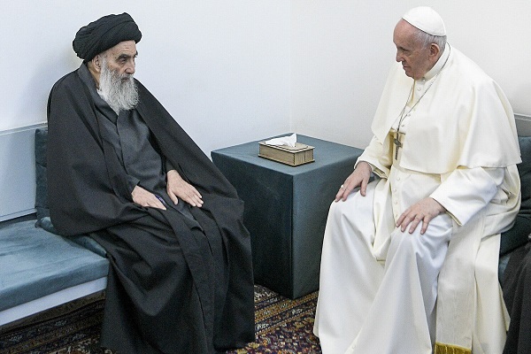 نکته اینجاست که در چنین شرایطی، ملاقات پاپ و آیتالله سیستانی به عنوان یک رهبر بزرگ شیعی در جهت خلاف جریان نامطلوبی قرار میگیرد و میتواند پرکننده خلأ باشد و از تأثیرات منفی تلاشها و روندهای مزبور بکاهد؛ بنابراین بخش مهمی از اهمیّت این ملاقات برای شیعه به دلیل شرایط موجود است و به اعتقاد آقای مسجدجامعی اگر این دیدار چند سال قبل و مخصوصاً پیش از ظهور داعش اتفاق میافتاد از آنجا که تمایز بین شیعه و سنی هنوز در ذهن غیرمسلمانان چندان متعین نشده بود، اهمیّت زیادی نمیداشت.