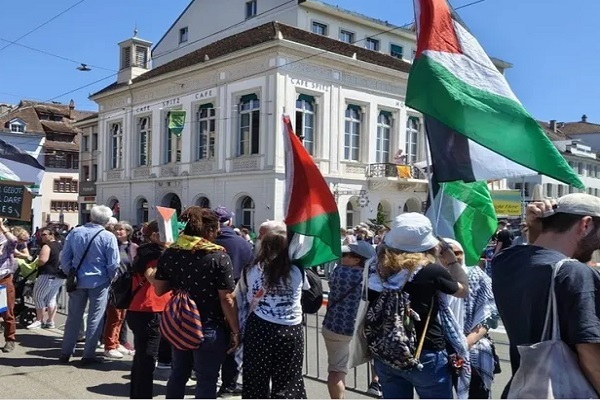 همزمان با شروع مراسم از مقابل ساختمان تاریخی شهرداری بازل، گروهی از شرکتکنندگان دهها پرچم فلسطین را برافراشتند. همچنین پرچمی در کنار بنری که روی آن خطاب به رژیم صهیونیستی نوشته شده بود مرزها را به روی غزه باز کنید، بگذارید کمکها وارد شود، برافراشته شد.