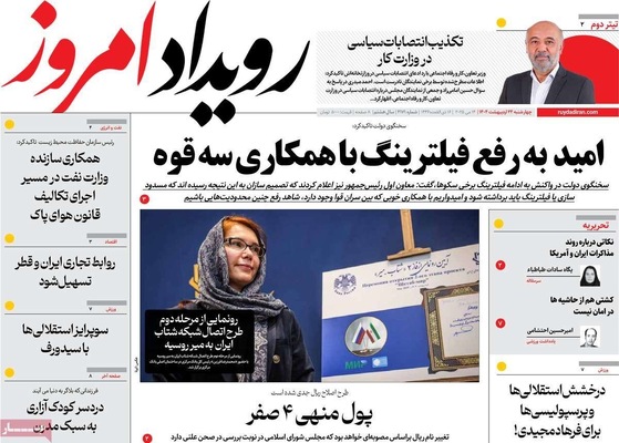 صفحه نخست روزنامههای چهارشنبه ۲۴ اردیبهشت ۱۴۰۴ را که به امکان رفع فیلترینگ، بده بستان در حجاز، شوک تعرفه و مهمترین رویدادهای ورزشی پرداختهاند؛ در ادامه مشاهده میکنید.