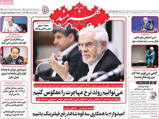 صفحه نخست روزنامههای چهارشنبه ۲۶ آذر ۱۴۰۴