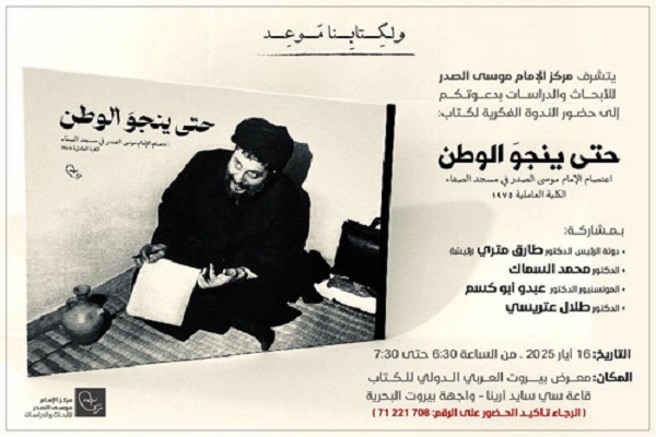 همزمان با افتتاح نمایشگاه، از کتاب «حتی ینجوَ الوطن» رونمایی شد؛ کتابی که به روایت تاریخی اعتصاب غذای امام موسی صدر در سال ۱۹۷۵، در میانه جنگ داخلی لبنان میپردازد.