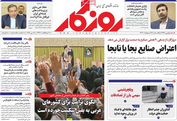 صفحه نخست روزنامههای یکشنبه ۲۸ اردیبهشت ۱۴۰۴