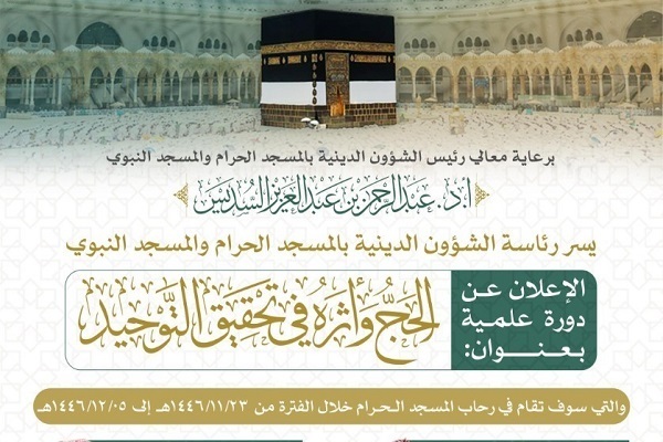 به گزارش ایکنا به نقل از روزنامه اینترنتی سبق، این دوره علمی از 23 ذیقعده 1446در مسجدالحرام آغاز میشود و تا پنجم ذیحجه ادامه خواهد داشت.