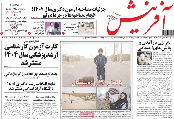 صفحه نخست روزنامههای چهارشنبه ۲۶ آذر ۱۴۰۴