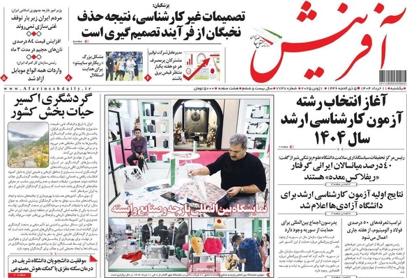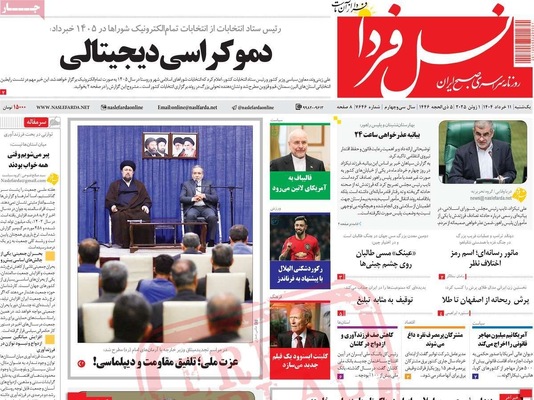 صفحه نخست روزنامههای یکشنبه ۱۱ خرداد ۱۴۰۴ را که به اعتماد به تیم مذاکره کننده، اعتراض تند تهران به آژانس، خون در رگ هوش مصنوعی و مهمترین رویدادهای ورزشی پرداختهاند؛ در ادامه مشاهده میکنید.