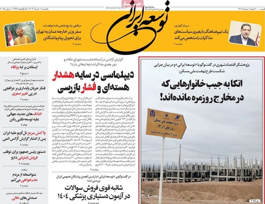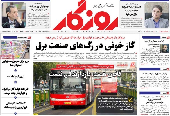 صفحه نخست روزنامههای یکشنبه ۱۱ خرداد ۱۴۰۴
