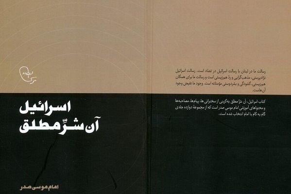 کتاب «اسرائیل، آن شرِّمطلق» تألیف امام موسی صدر به اهتمام حورا صدر، در قطع پالتویی، جلد شومیز، کاغذ بالکی، با ۵۲۸ صفحه، شمارگان هزار نسخه، در سال ۱۴۰۴ توسط مؤسسه فرهنگی تحقیقاتی امام موسی صدر منتشر شد.