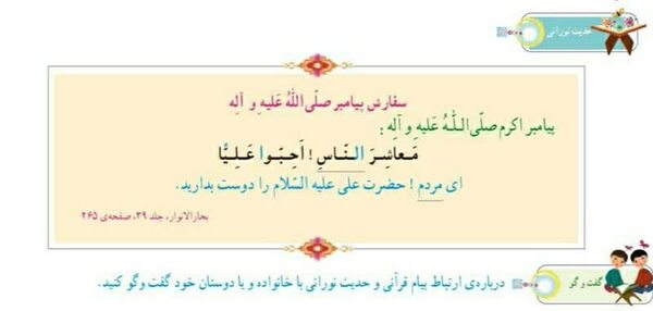 تصویر در آموزش کودکان نقش محوری دارد و کودکان در نخستین سال‌های تحصیل، ارتباط عمیق‌تری با تصاویر برقرار می‌کنند و به همین دلیل از طریق آنها معانی و مفاهیم را بهتر درک می‌کنند. حضور نقاشی‌ها و تصویرگری‌های مرتبط با مفاهیم قرآنی و اهل‌ بیتی در کتب درسی نه تنها جذابیت آموزشی را افزایش می‌دهد، بلکه احساس نزدیکی و محبت به قرآن و اهل‌ بیت(ع) را در ذهن دانش‌آموزان تقویت می‌کند.