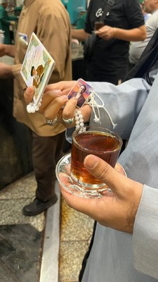 در این مراسم باشکوه، کیک تولدی به یاد شهید برش زده و به همراه تسبیحهای زیبا میان زائران توزیع شد. این اقدام نمادی از پیوند روحانی و معنوی شهید با زائران و مردم بود. چهرههای متأثر و اشکهای شوق و افتخار، فضای مراسم را آکنده از عطر محبت و صبر کرده بود.