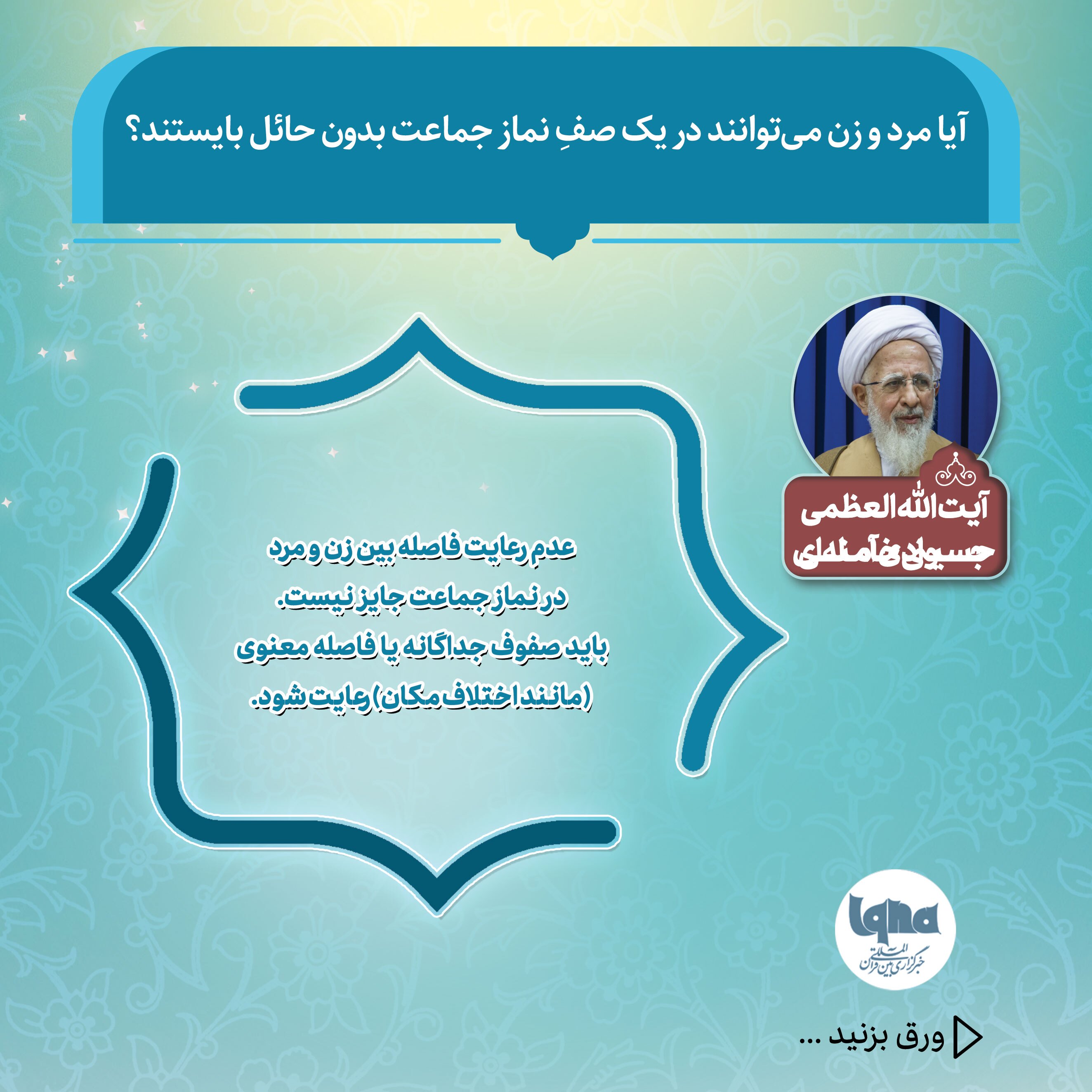 فتوتیتر | حکم ایستادن زن و مرد در یک صف نماز جماعت بدون حائل