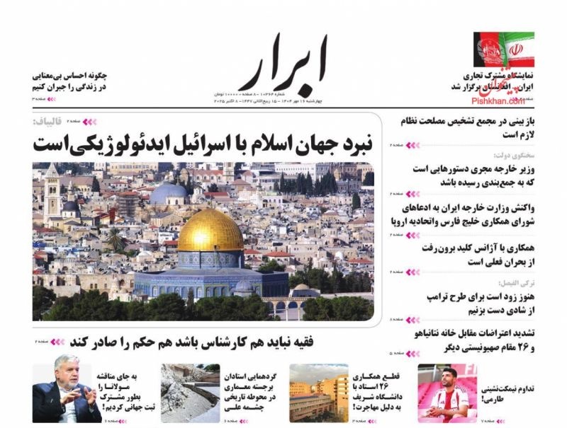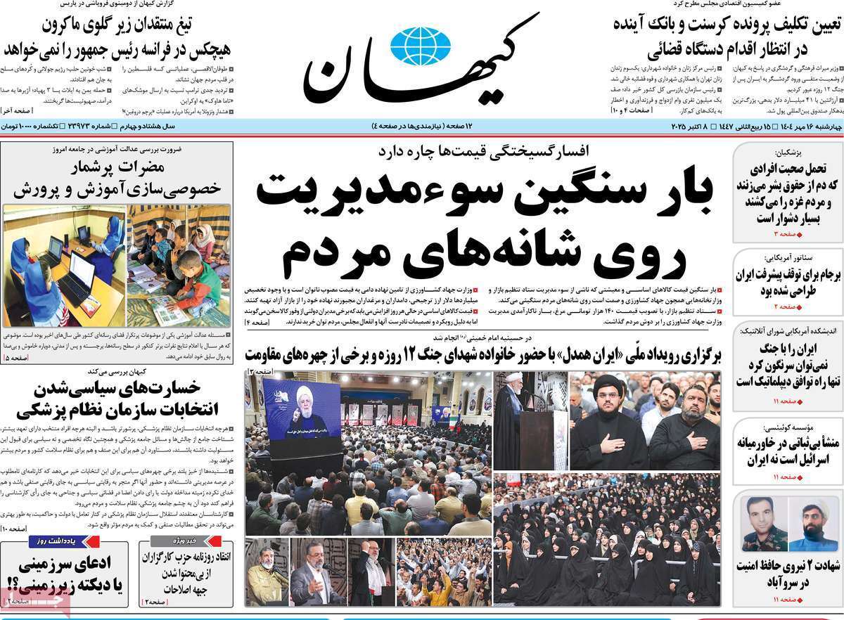 صفحه نخست روزنامههای چهارشنبه ۱۶ مهر ۱۴۰۴ را که به تشکیل کارگروه حمایت از تولید و صادرات، زخم باز پروندههای جنجالی، معمای غزه و دومینوی توافقها و مهمترین رویدادهای ورزشی پرداختهاند؛ در ادامه مشاهده میکنید.