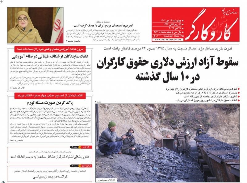 صفحه نخست روزنامههای چهارشنبه ۱۶ مهر ۱۴۰۴