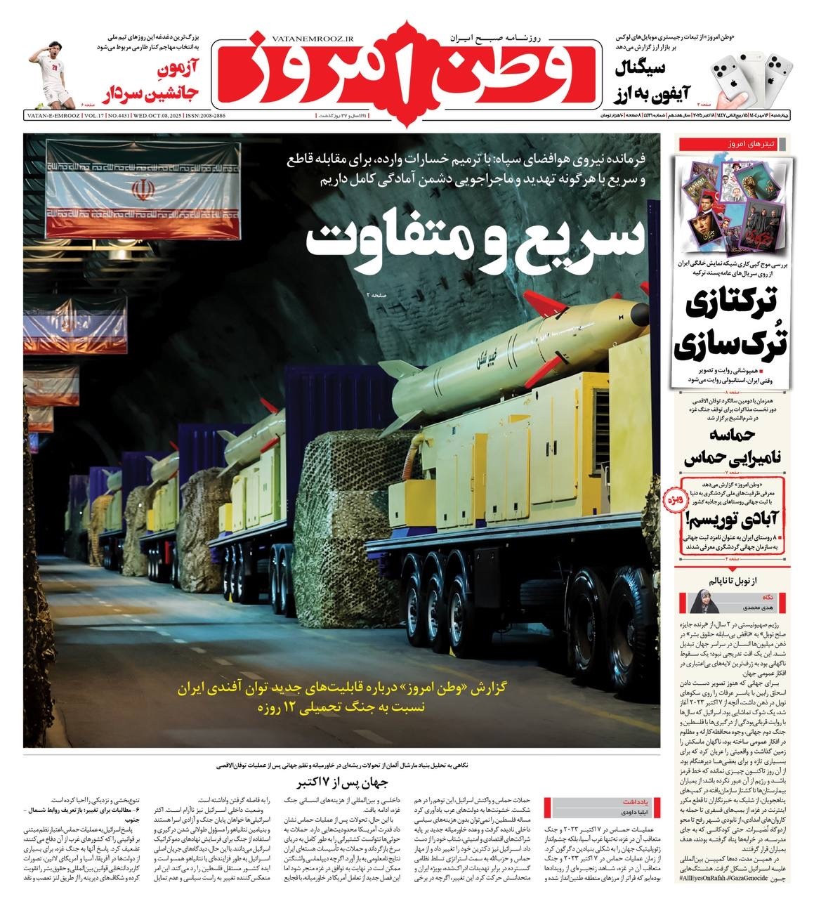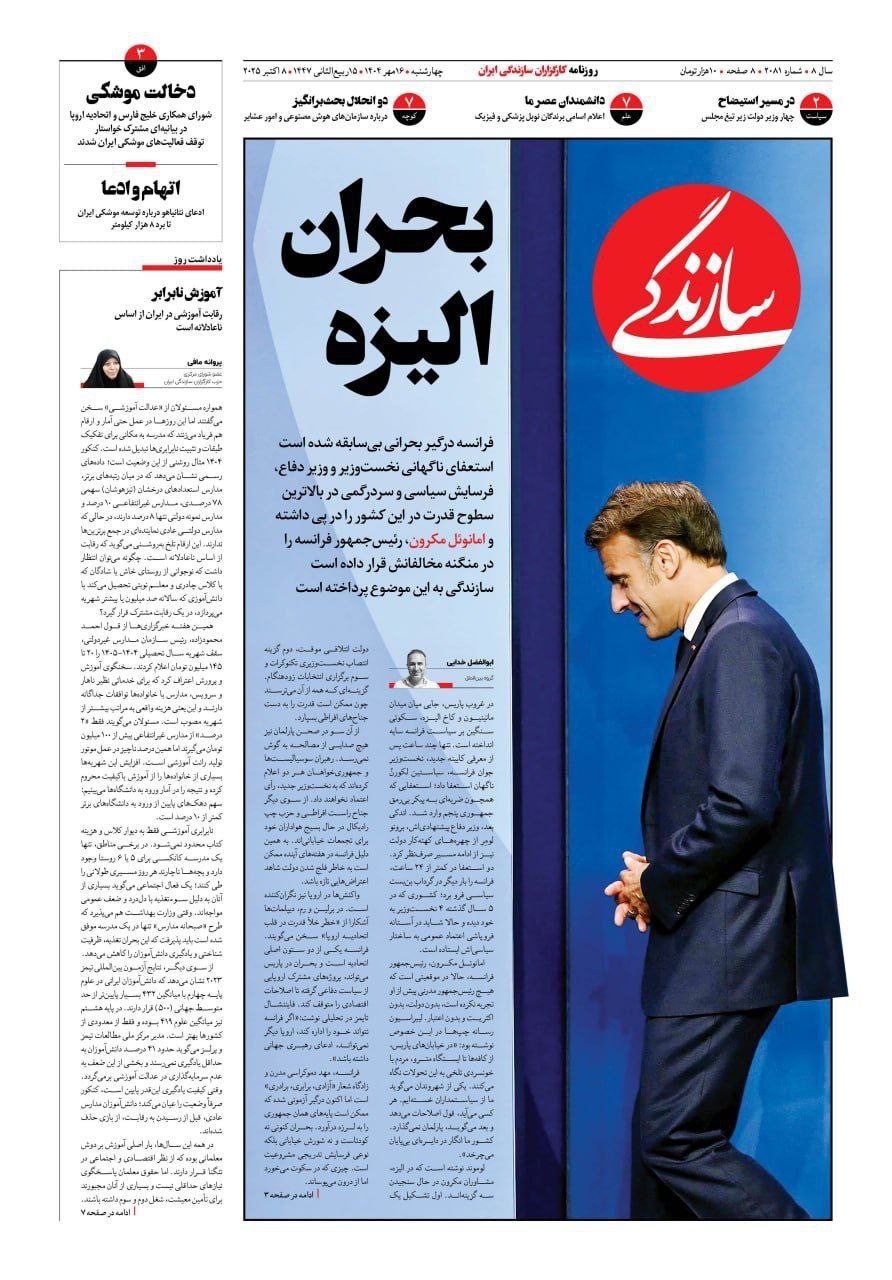 صفحه نخست روزنامههای سهشنبه ۱۵ مهر ۱۴۰۴