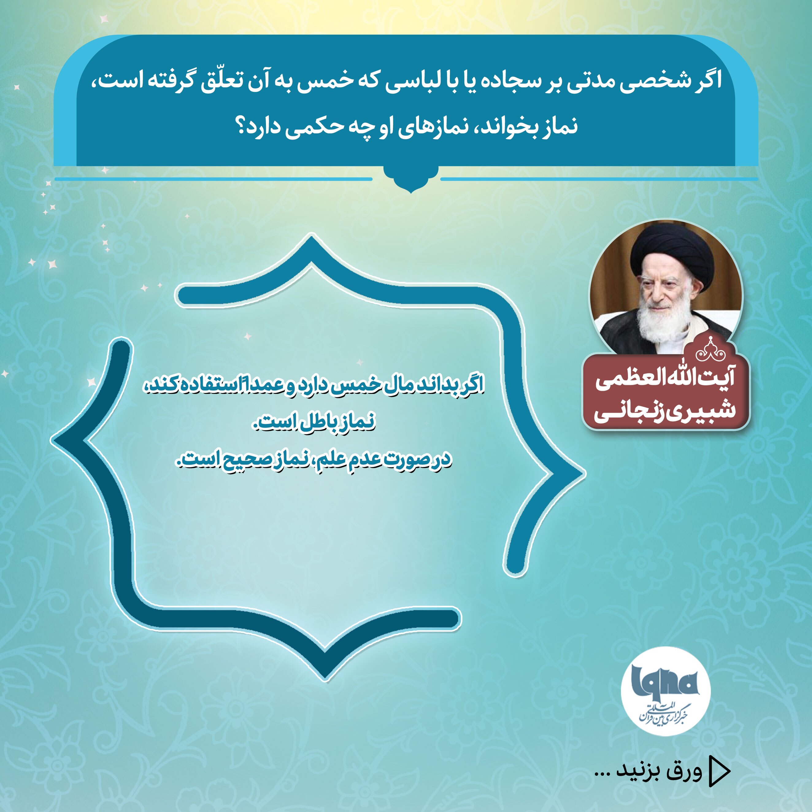 فتوتیتر | حکم نماز بر سجاده یا با لباسی که خمس آن داده نشده است