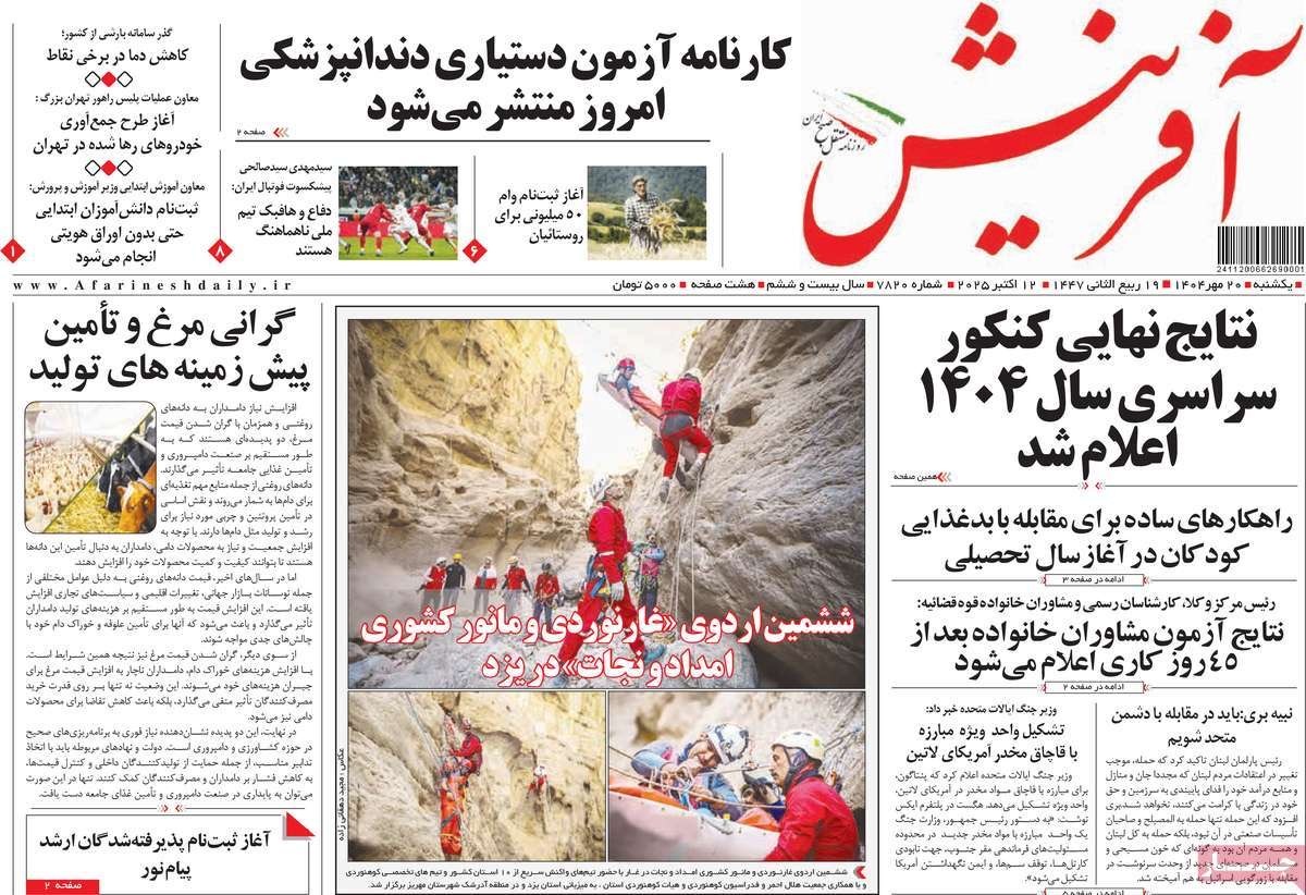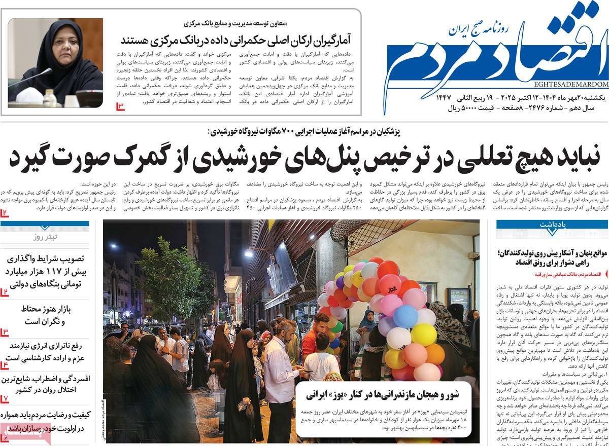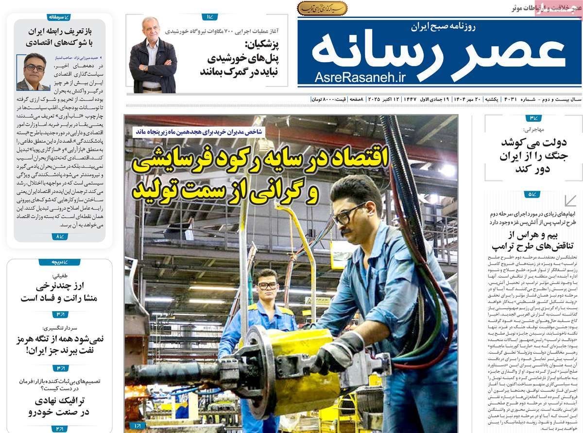 صفحه نخست روزنامههای یکشنبه ۲۰ مهر ۱۴۰۴