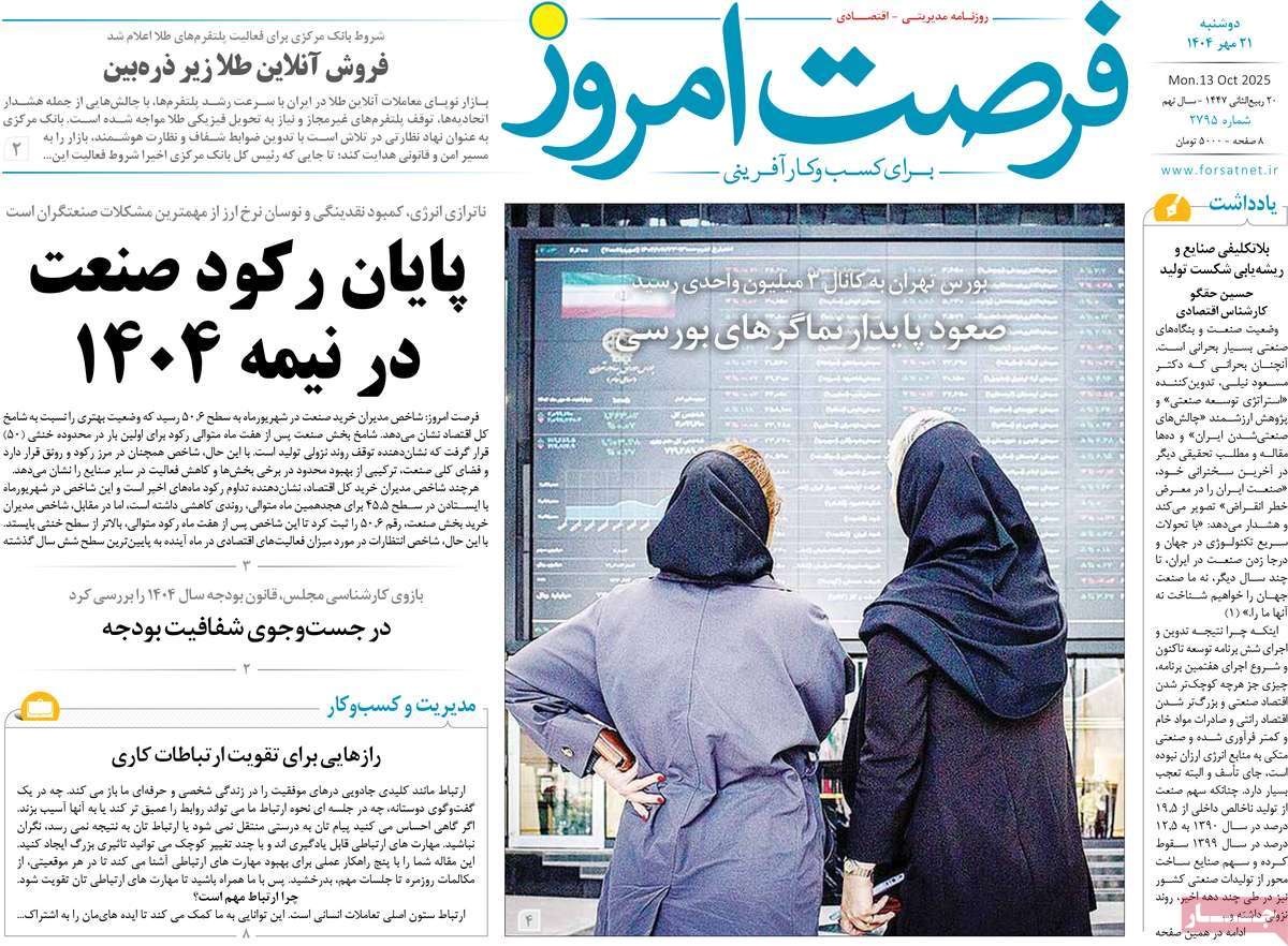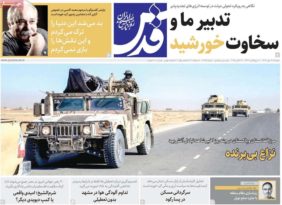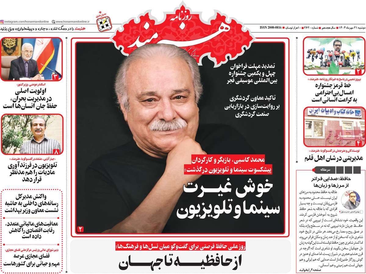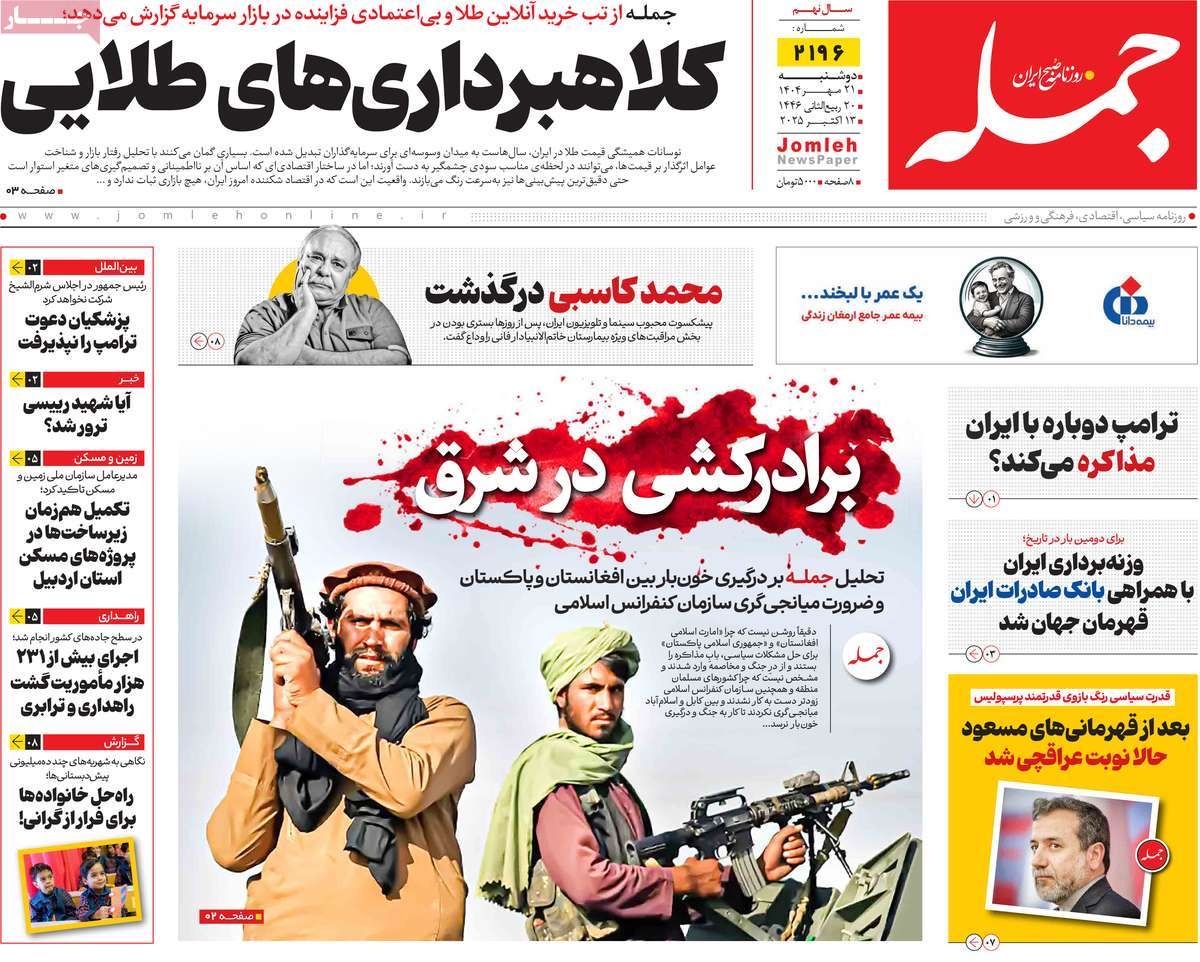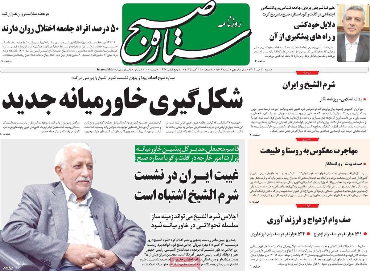 صفحه نخست روزنامههای دوشنبه ۲۱ مهر ۱۴۰۴