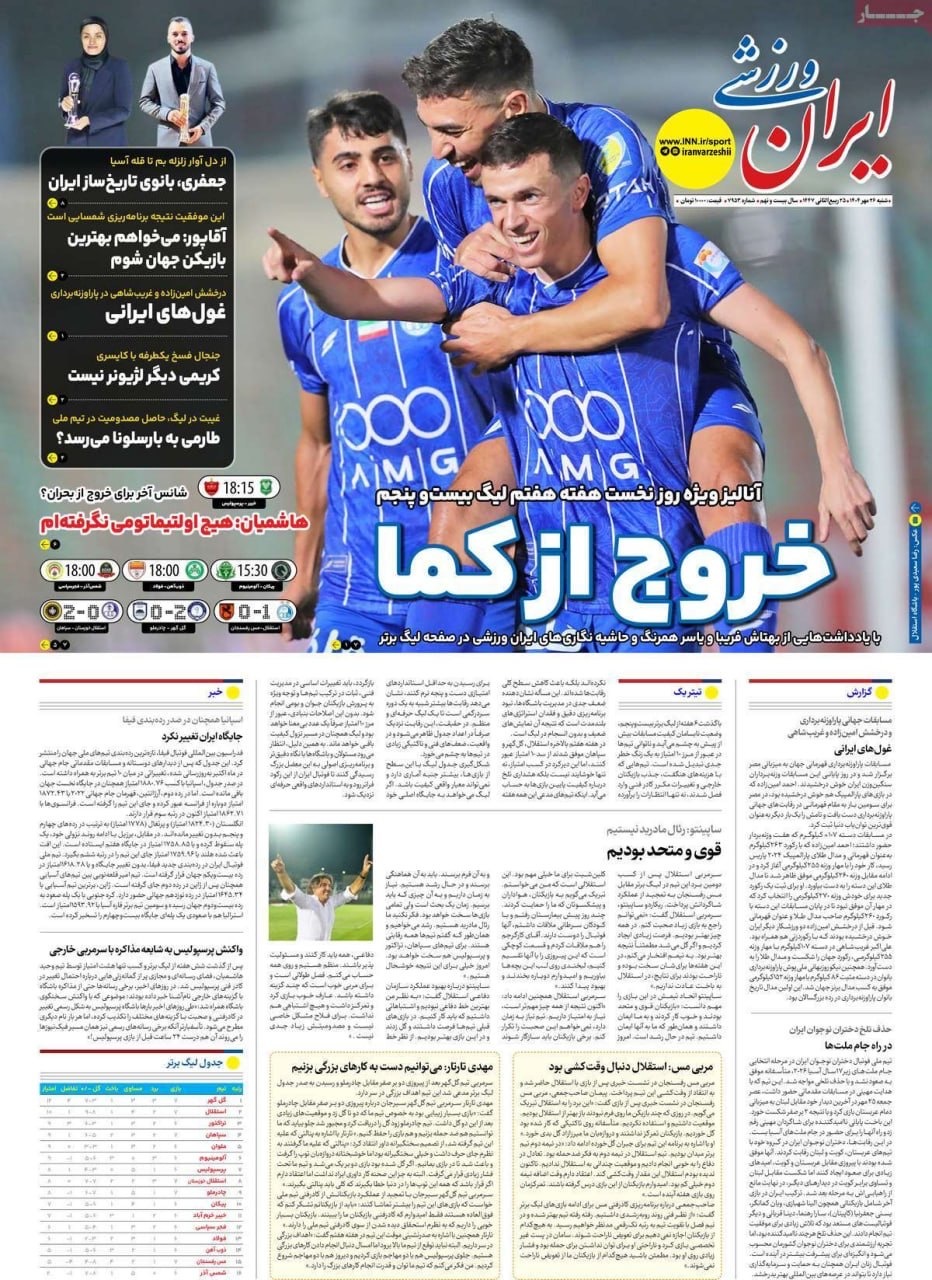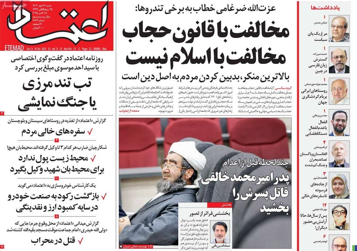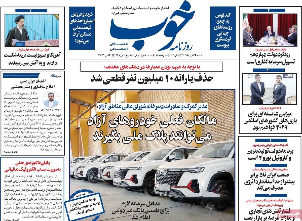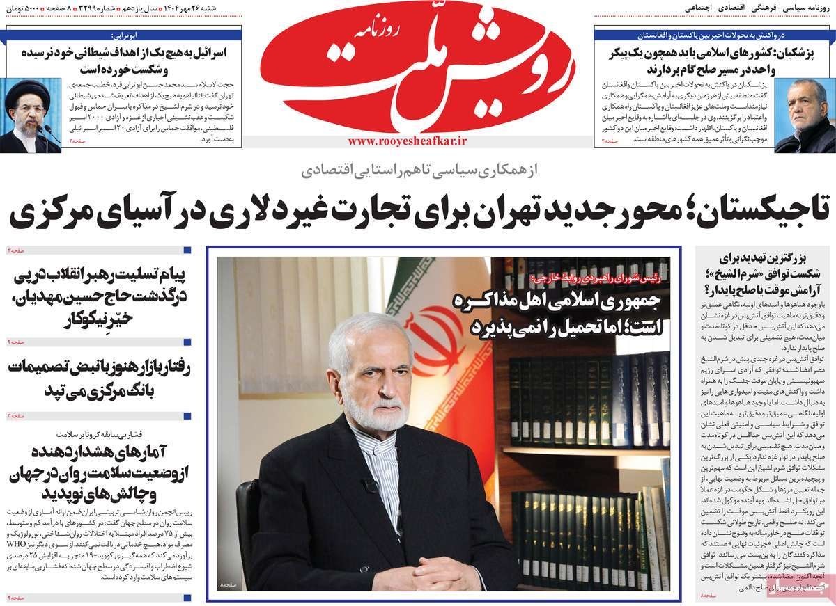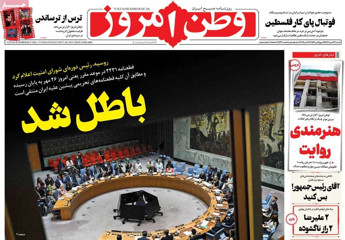 صفحه نخست روزنامههای شنبه ۲۶ مهر ۱۴۰۴