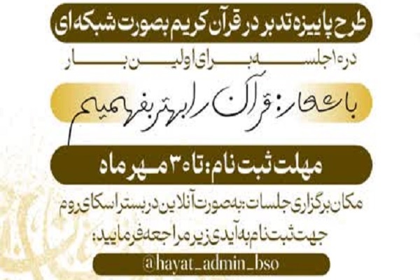 این طرح با شعار «قرآن را بهتر بفهمیم» برگزار میشود و شامل ۱۰ جلسه آموزشی است که برای نخستین بار بهصورت شبکهای و بر بستر مجازی اسکایروم برپا خواهد شد.