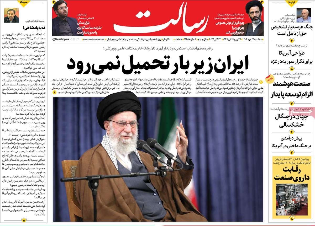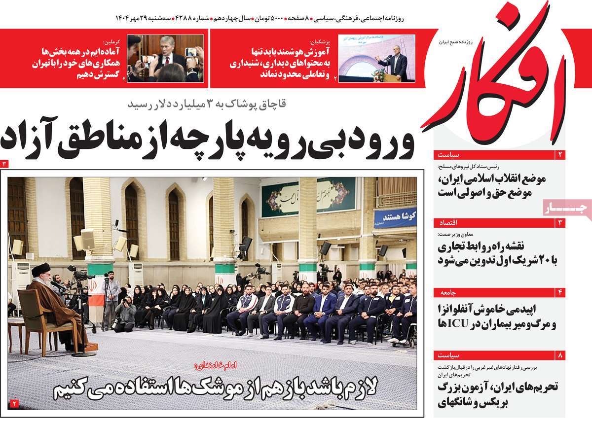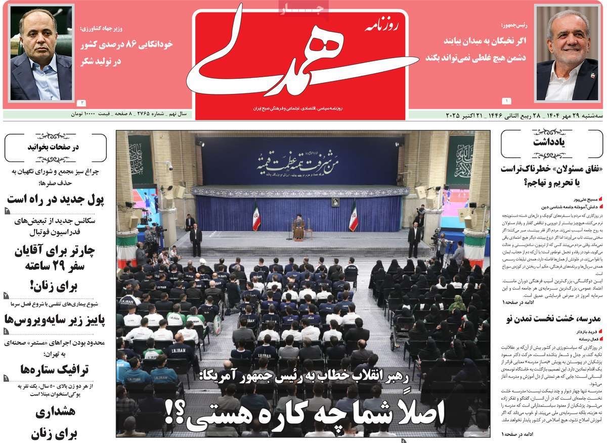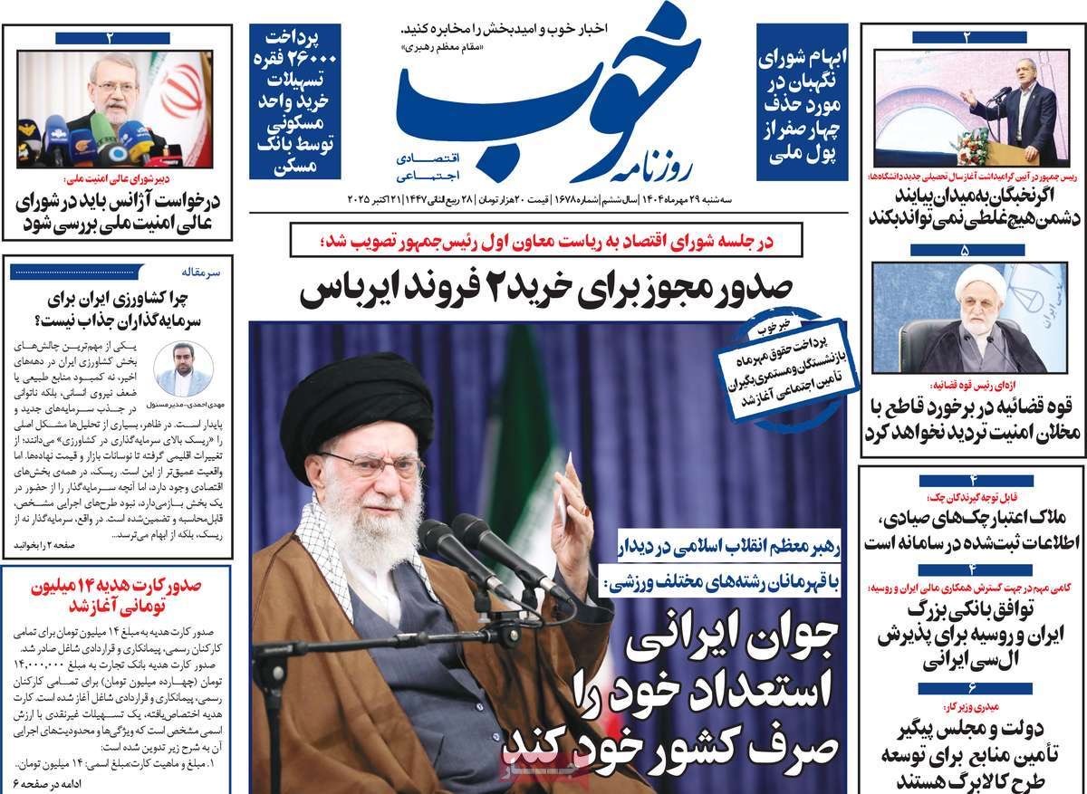 صفحه نخست روزنامههای سهشنبه ۲۹ مهر ۱۴۰۴ را که به ایمان به نسل معجزهگر، ملت ایران زیر بار تحمیل نمیرود، نابودی قشر متوسط و مهمترین رویدادهای ورزشی پرداختهاند؛ در ادامه مشاهده میکنید.