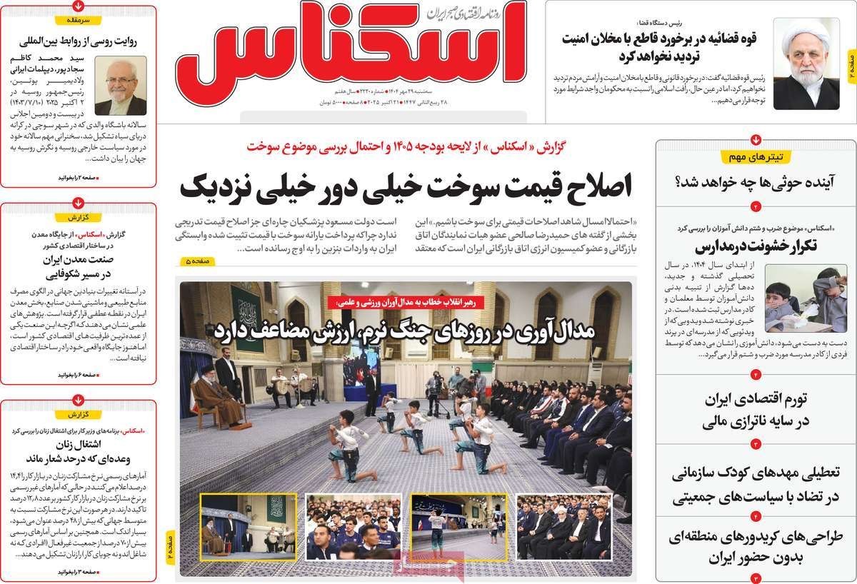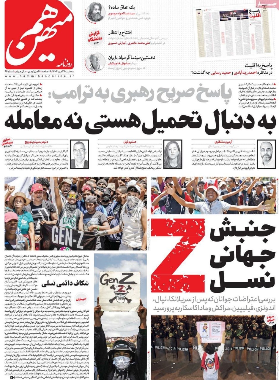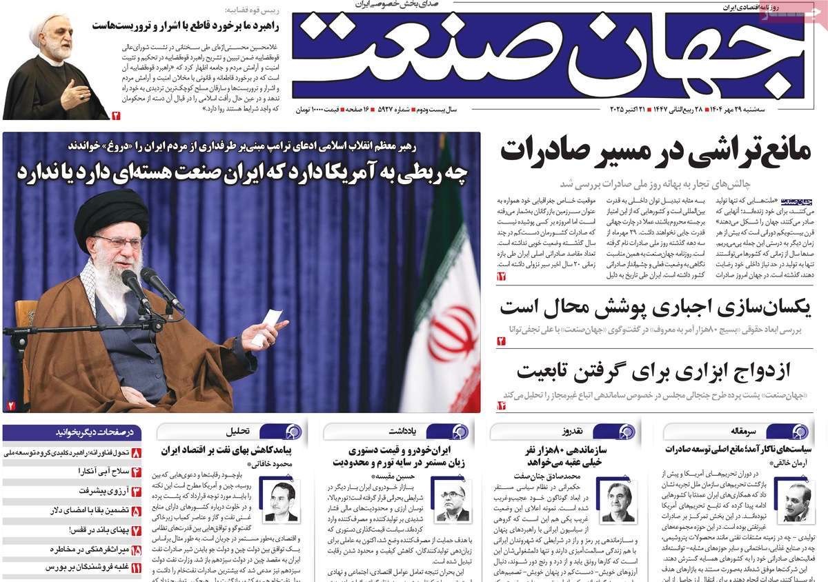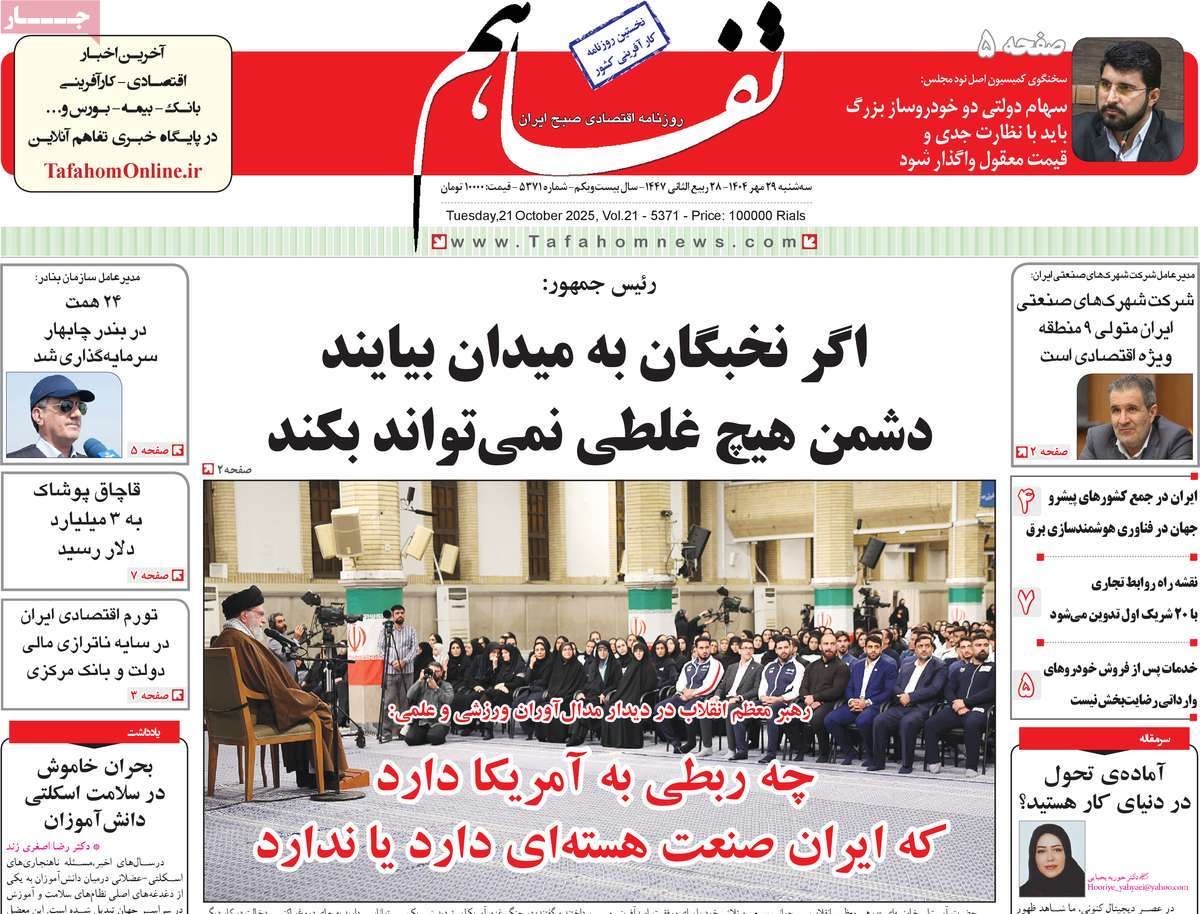 صفحه نخست روزنامههای سهشنبه ۲۹ مهر ۱۴۰۴ را که به ایمان به نسل معجزهگر، ملت ایران زیر بار تحمیل نمیرود، نابودی قشر متوسط و مهمترین رویدادهای ورزشی پرداختهاند؛ در ادامه مشاهده میکنید.