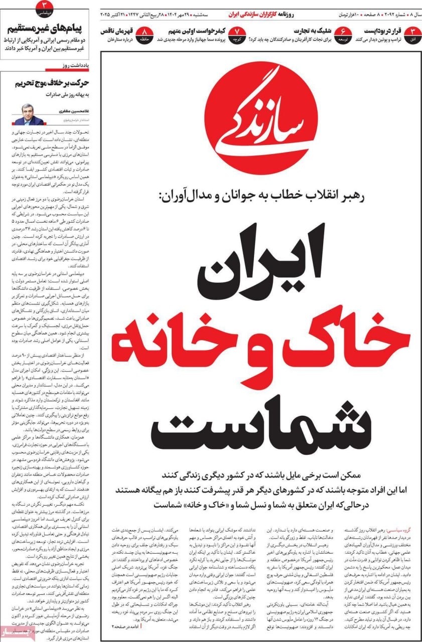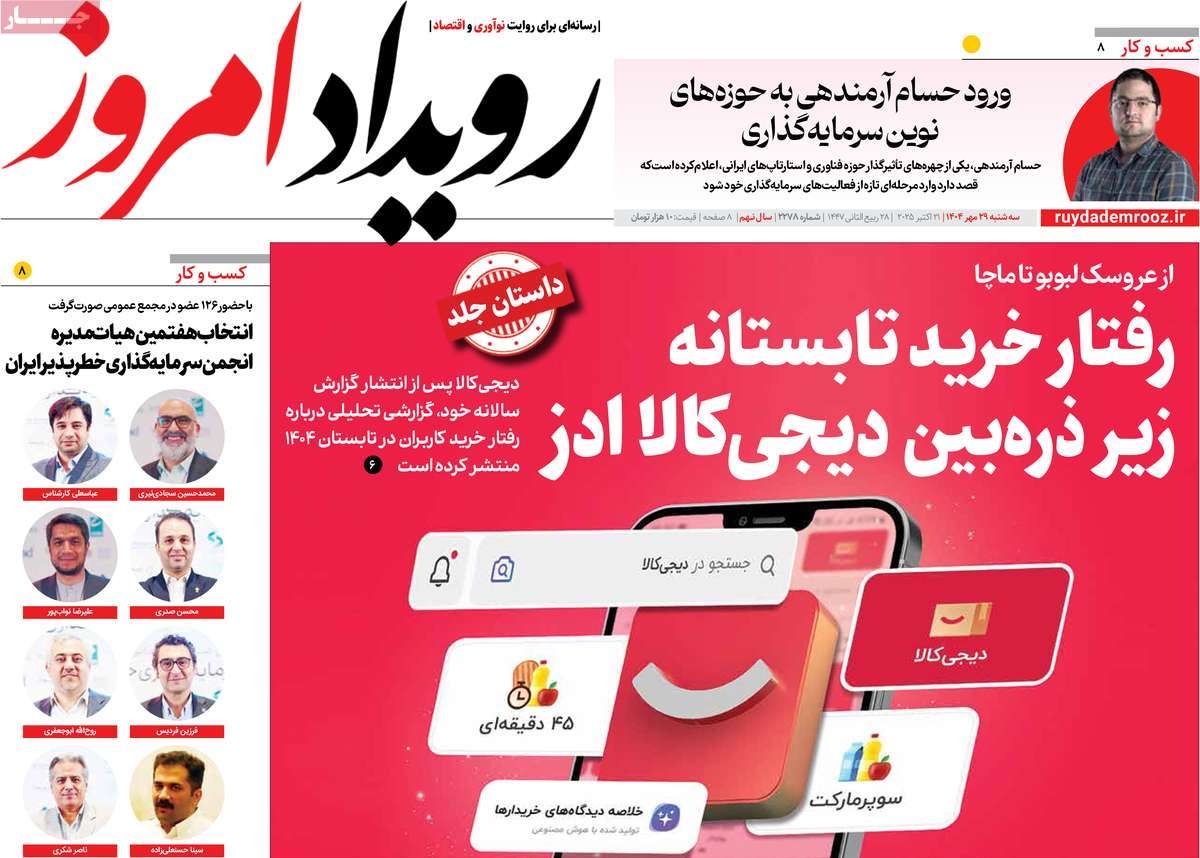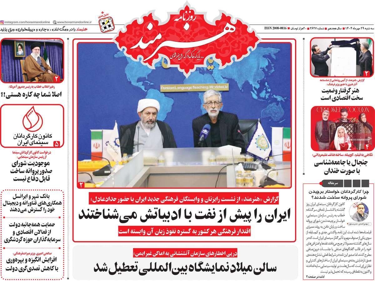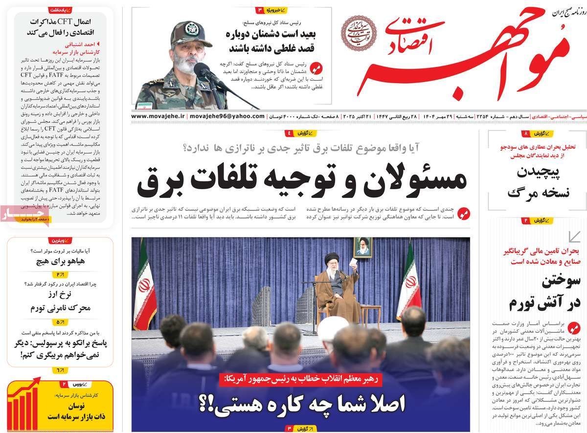 صفحه نخست روزنامههای سهشنبه ۲۹ مهر ۱۴۰۴