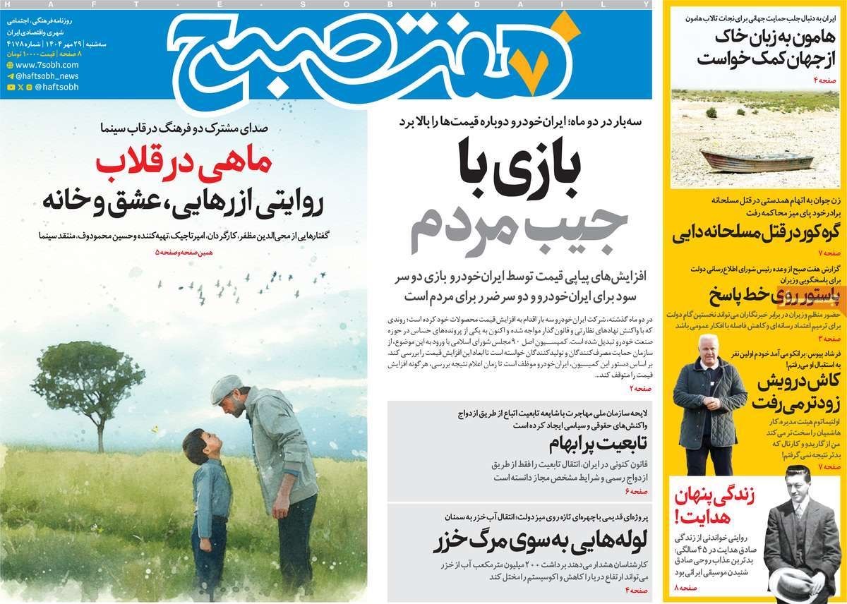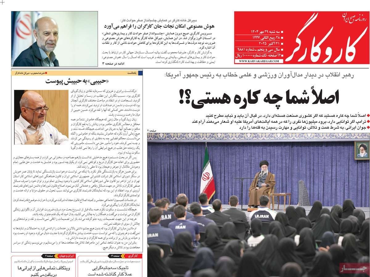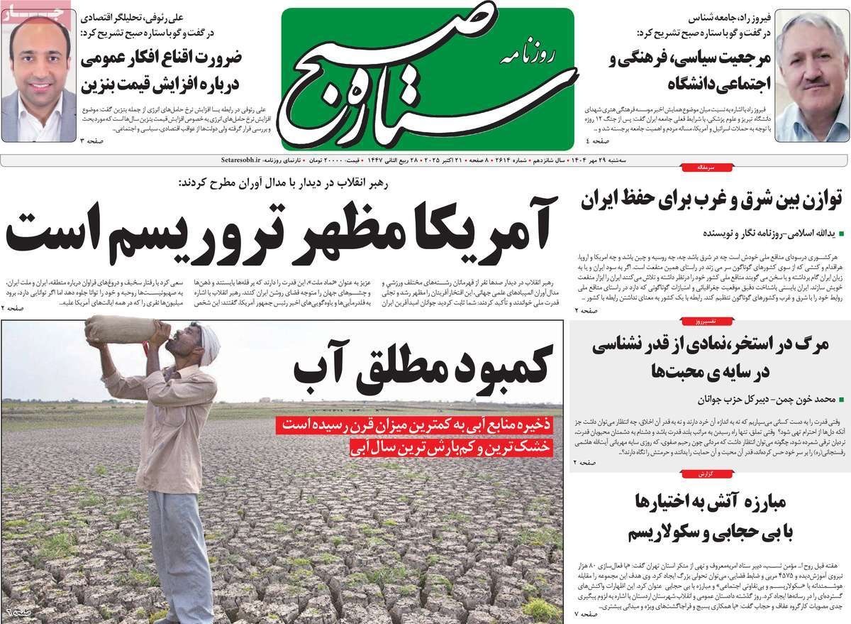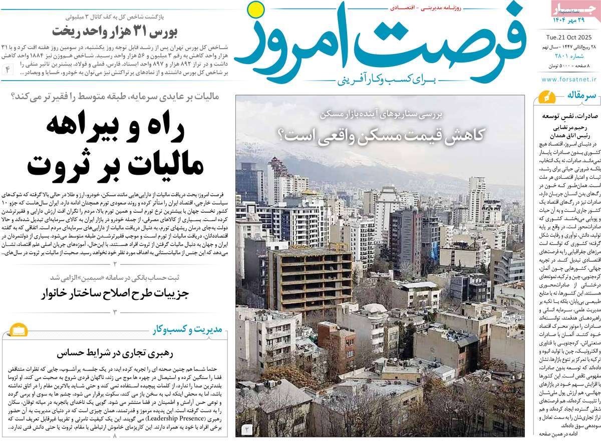 صفحه نخست روزنامههای سهشنبه ۲۹ مهر ۱۴۰۴