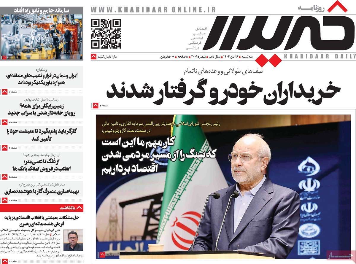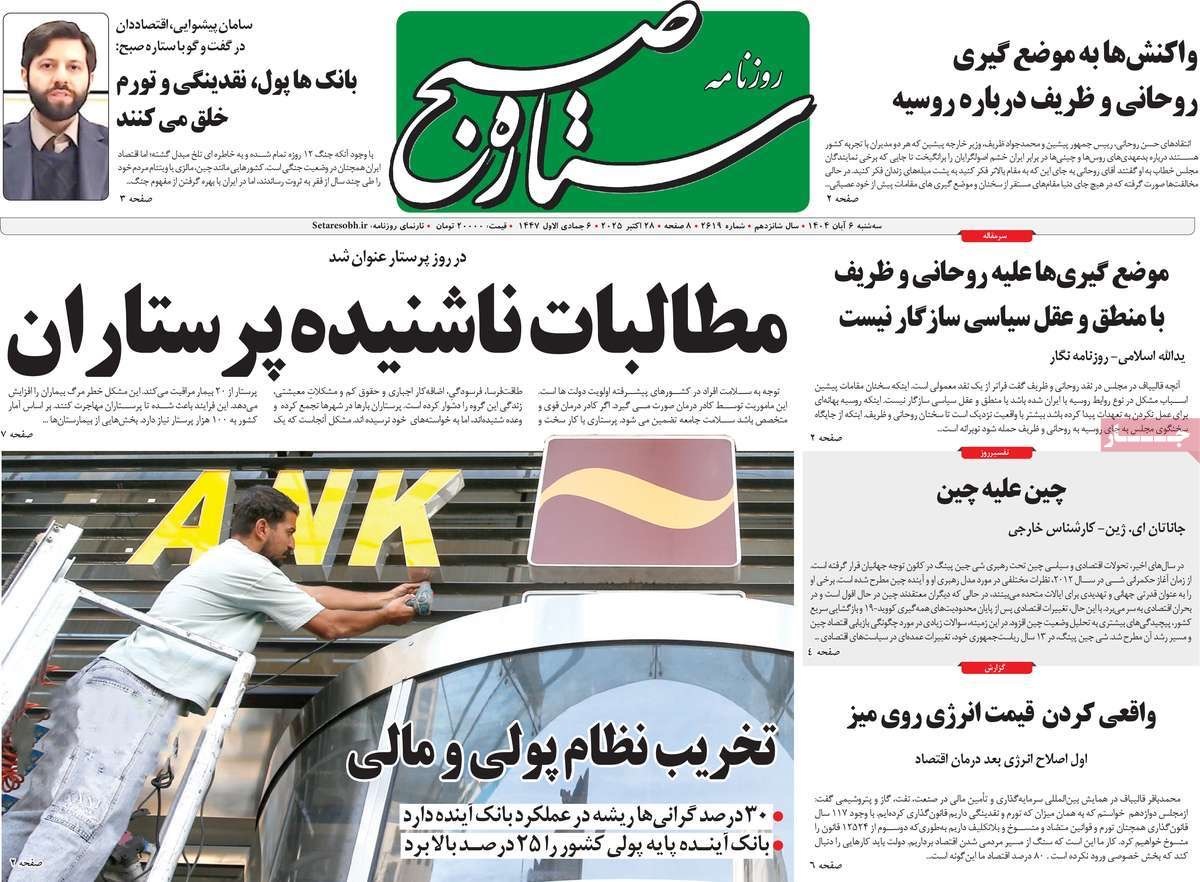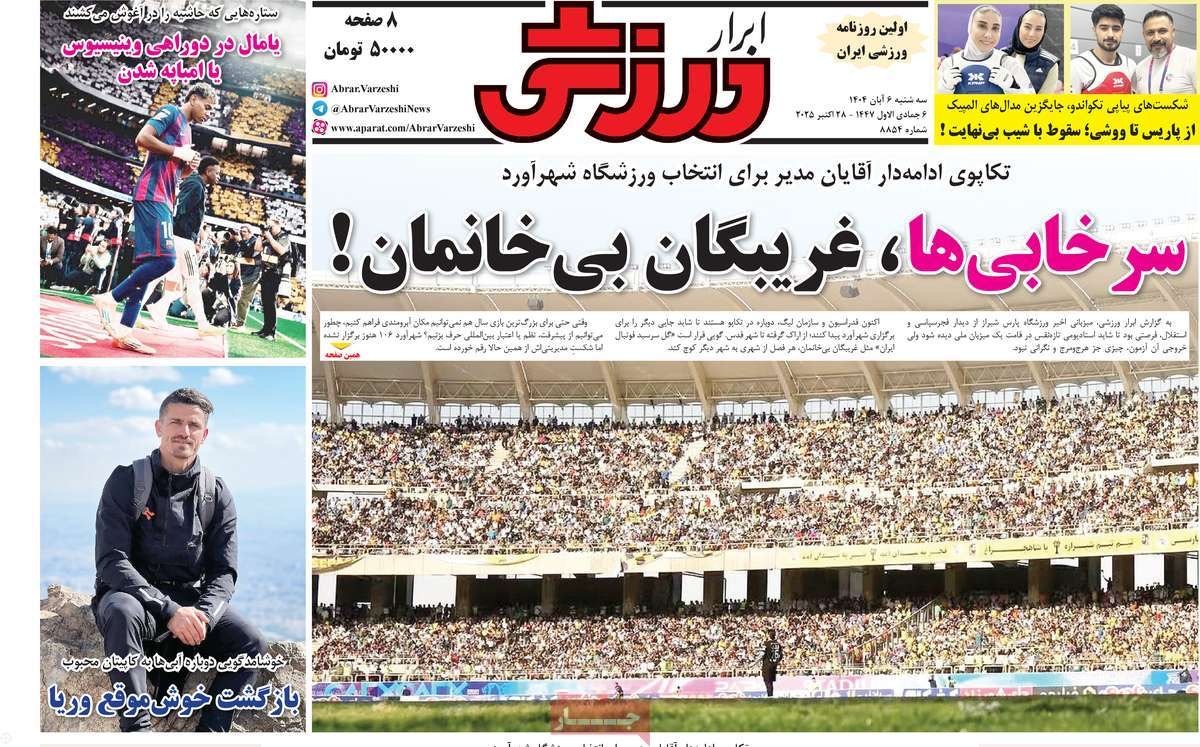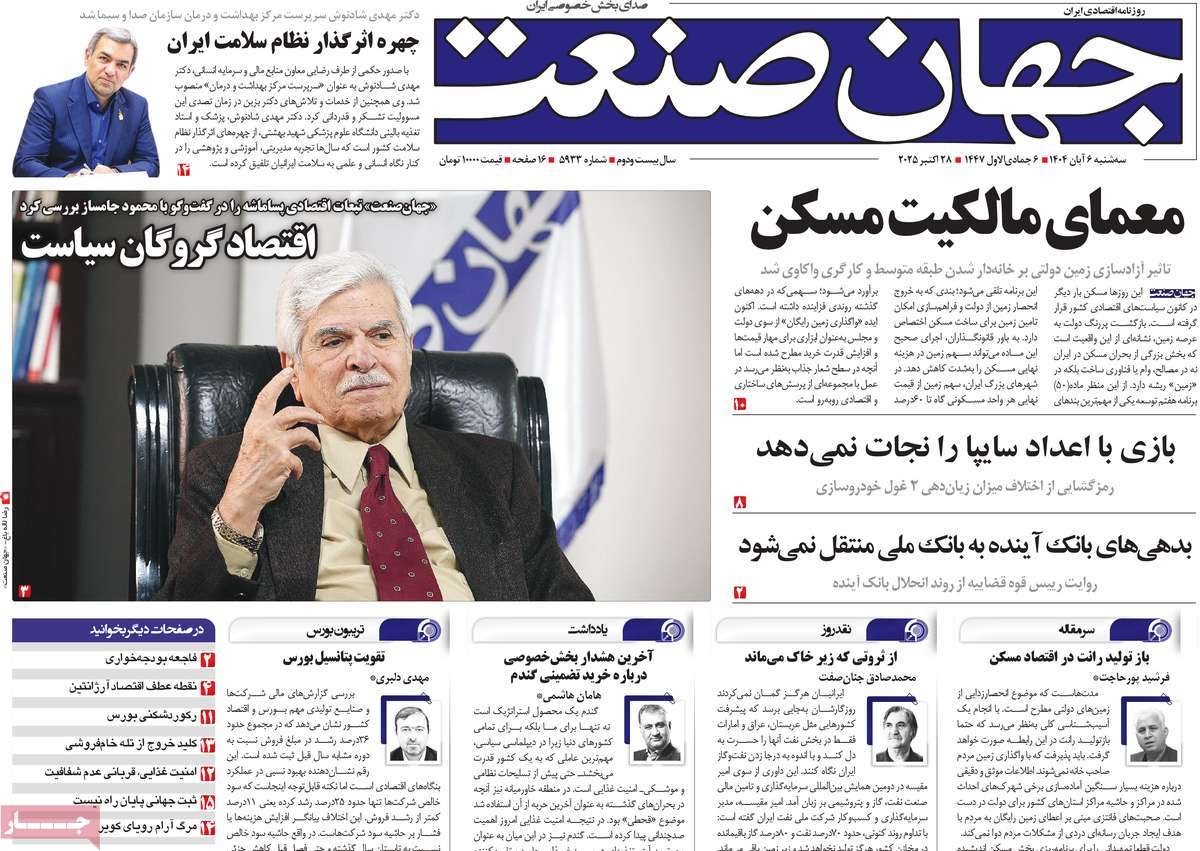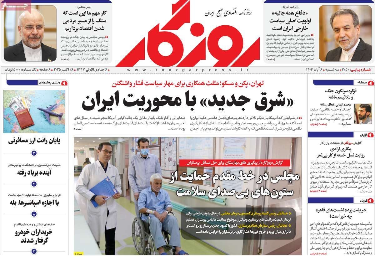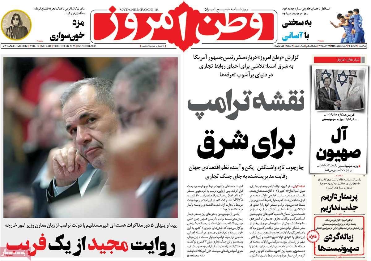 صفحه نخست روزنامههای سهشنبه ۶ آبان ۱۴۰۴
