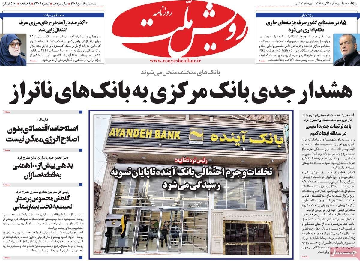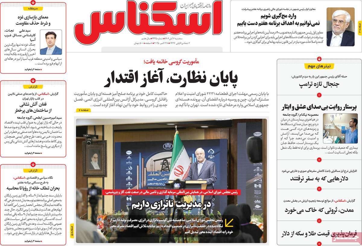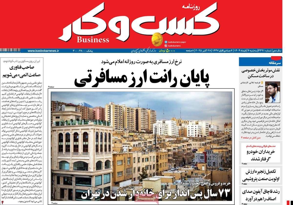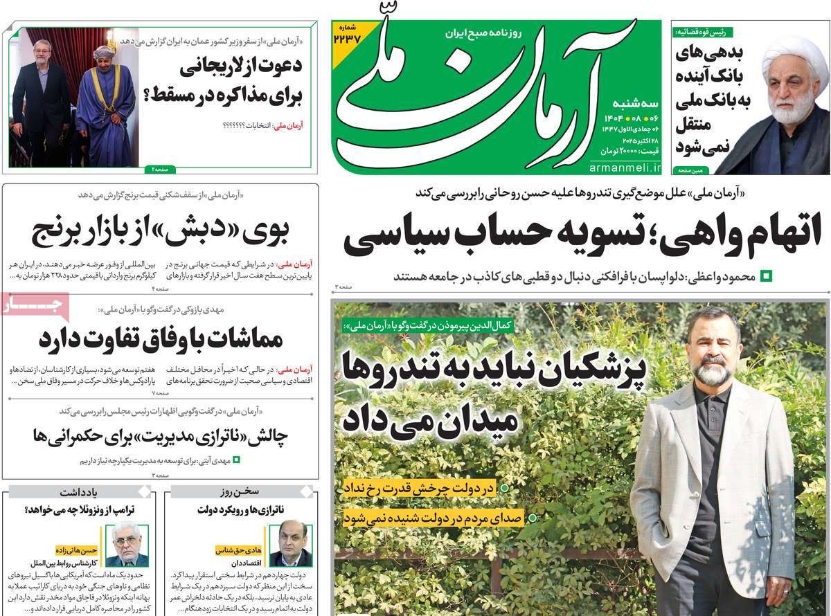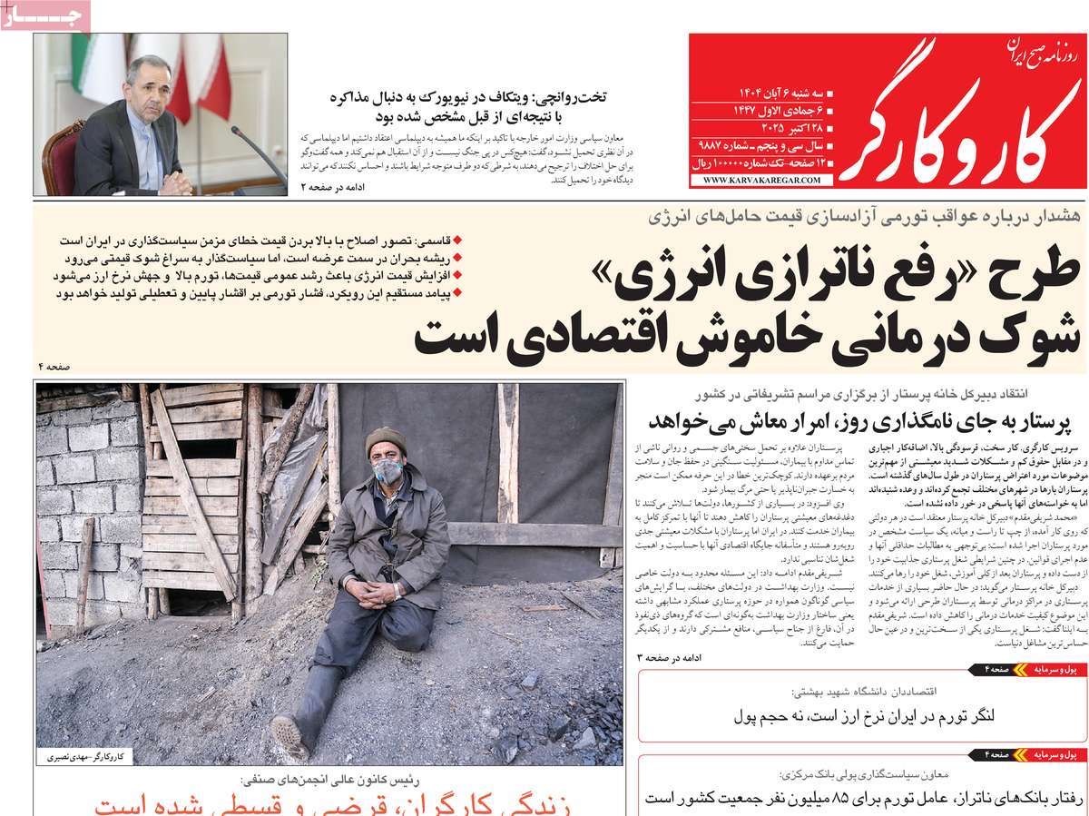 صفحه نخست روزنامههای سهشنبه ۶ آبان ۱۴۰۴