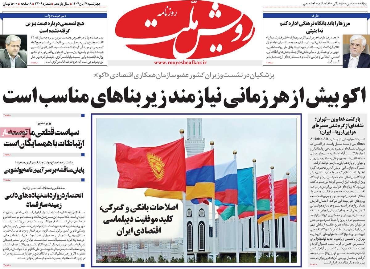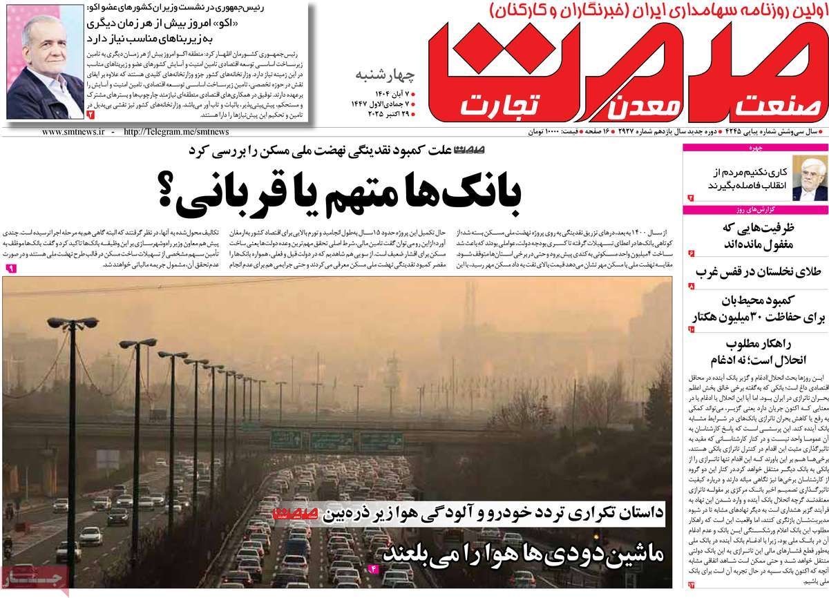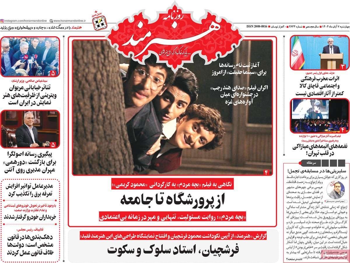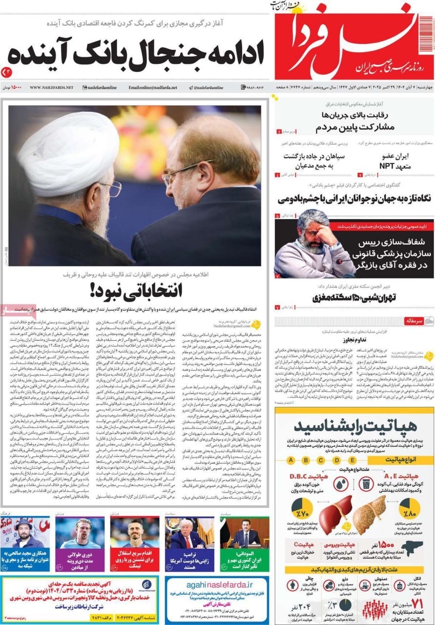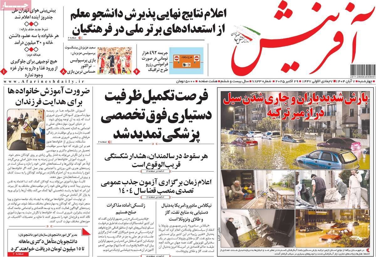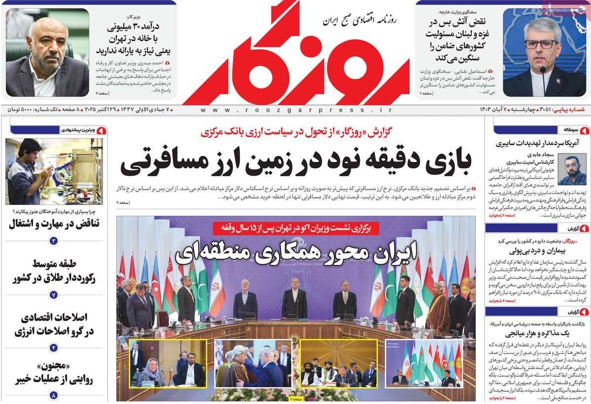 صفحه نخست روزنامههای چهارشنبه ۷ آبان ۱۴۰۴