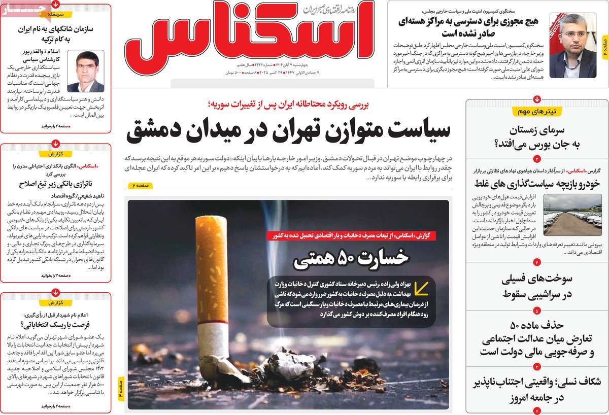 صفحه نخست روزنامههای چهارشنبه ۲۶ آذر ۱۴۰۴