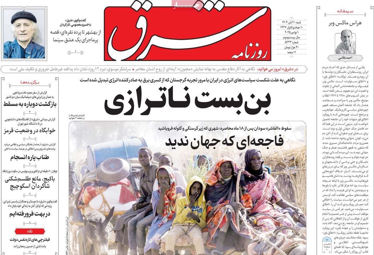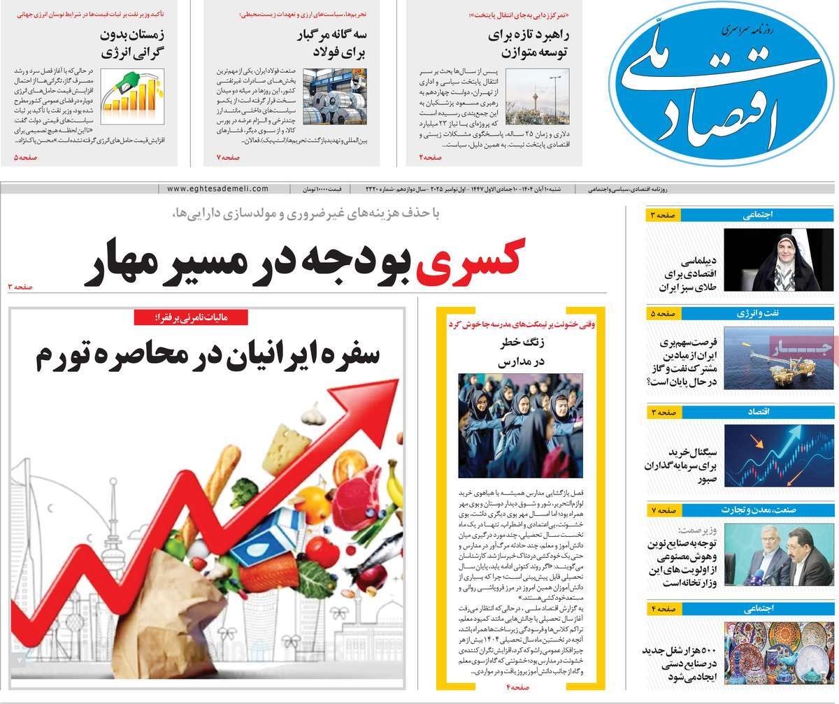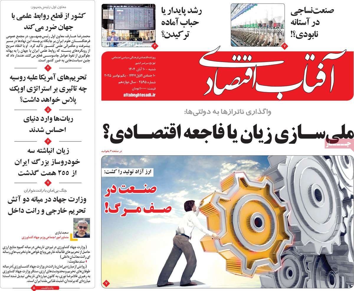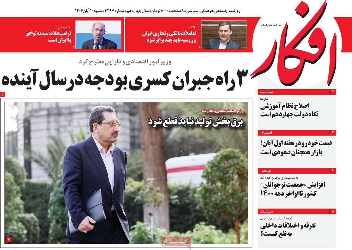 صفحه نخست روزنامههای شنبه ۱۰ آبان ۱۴۰۴