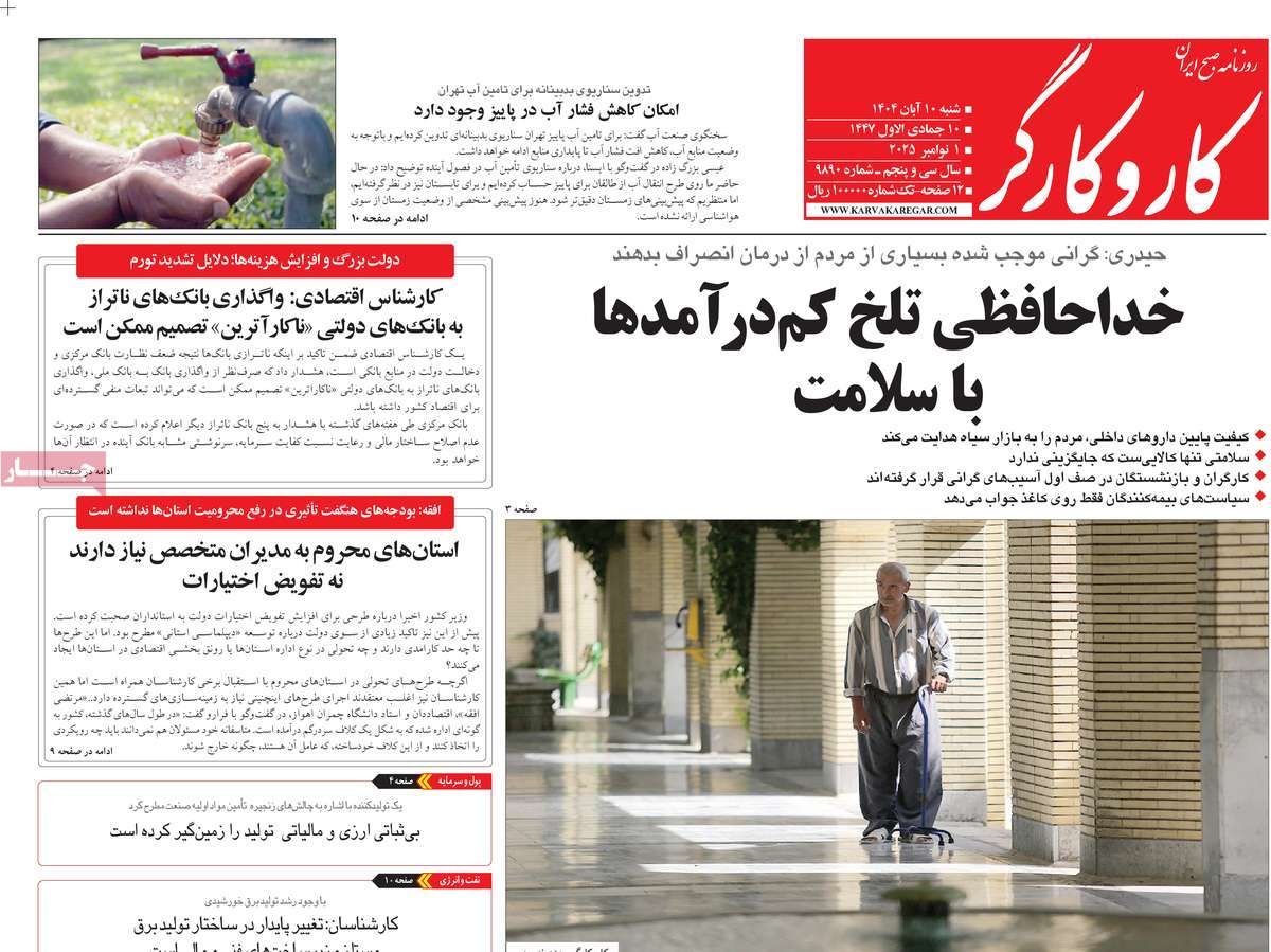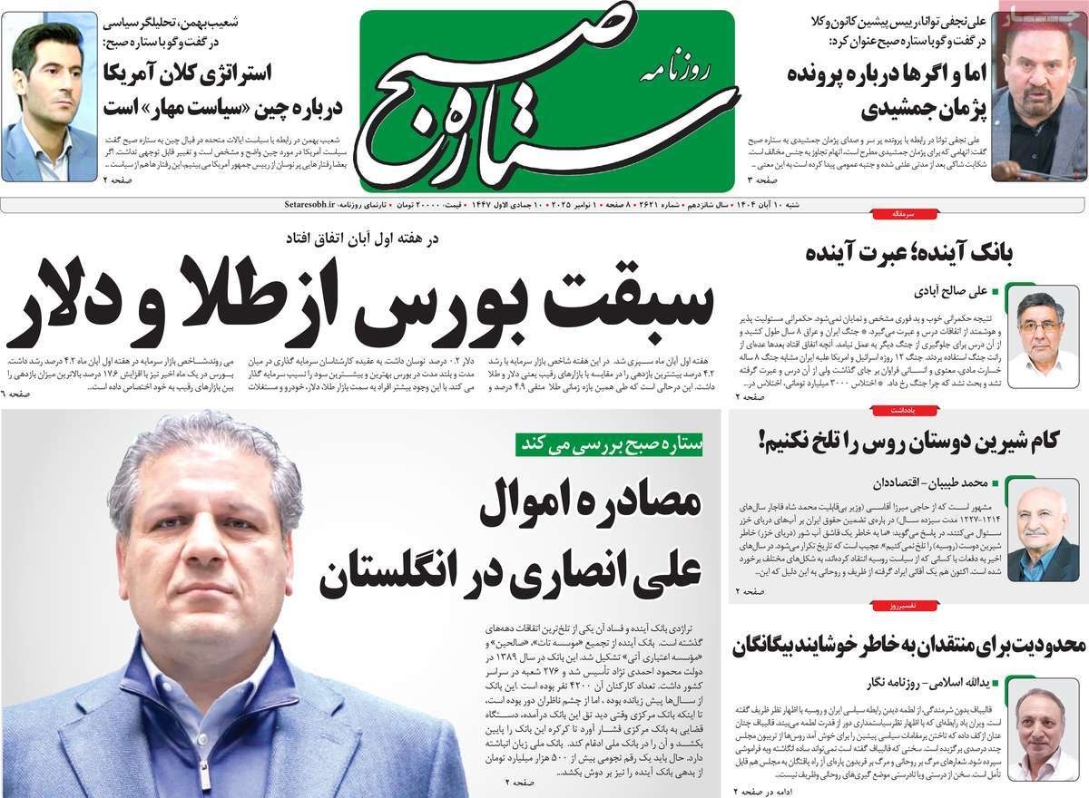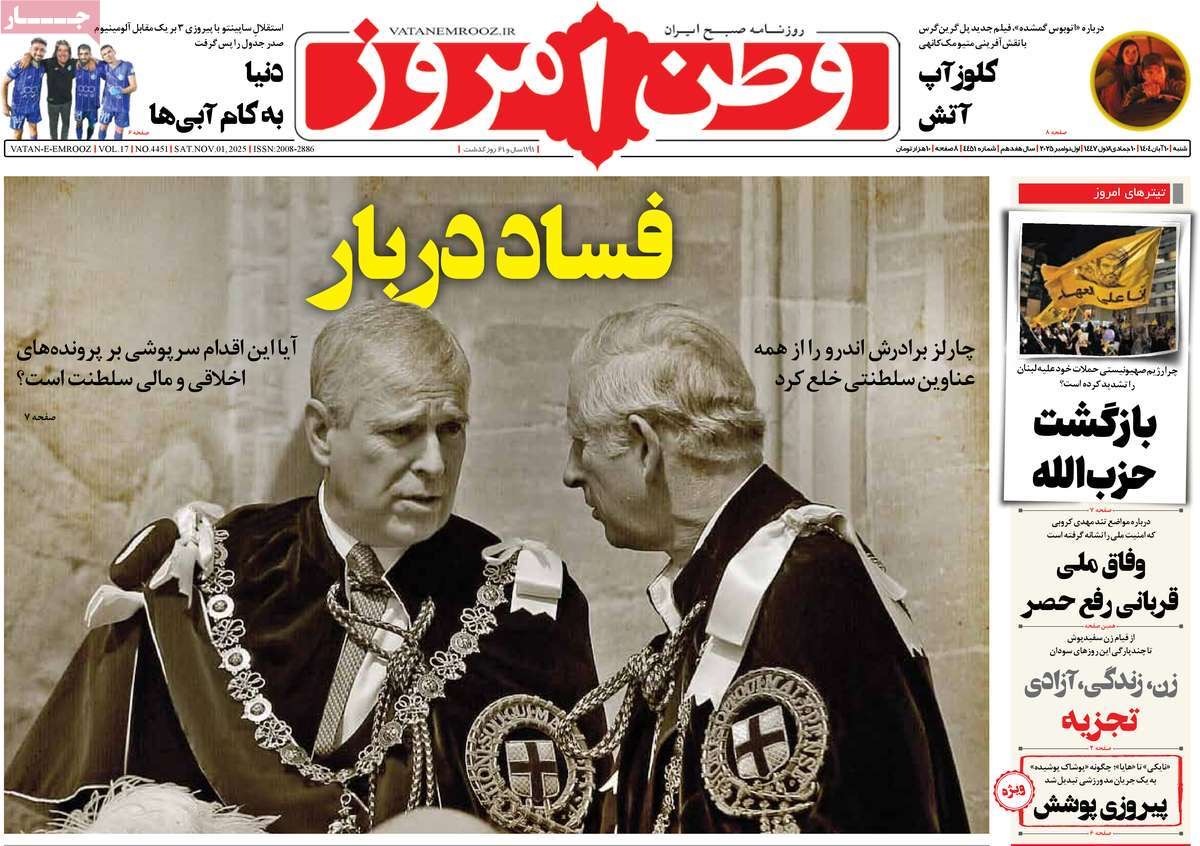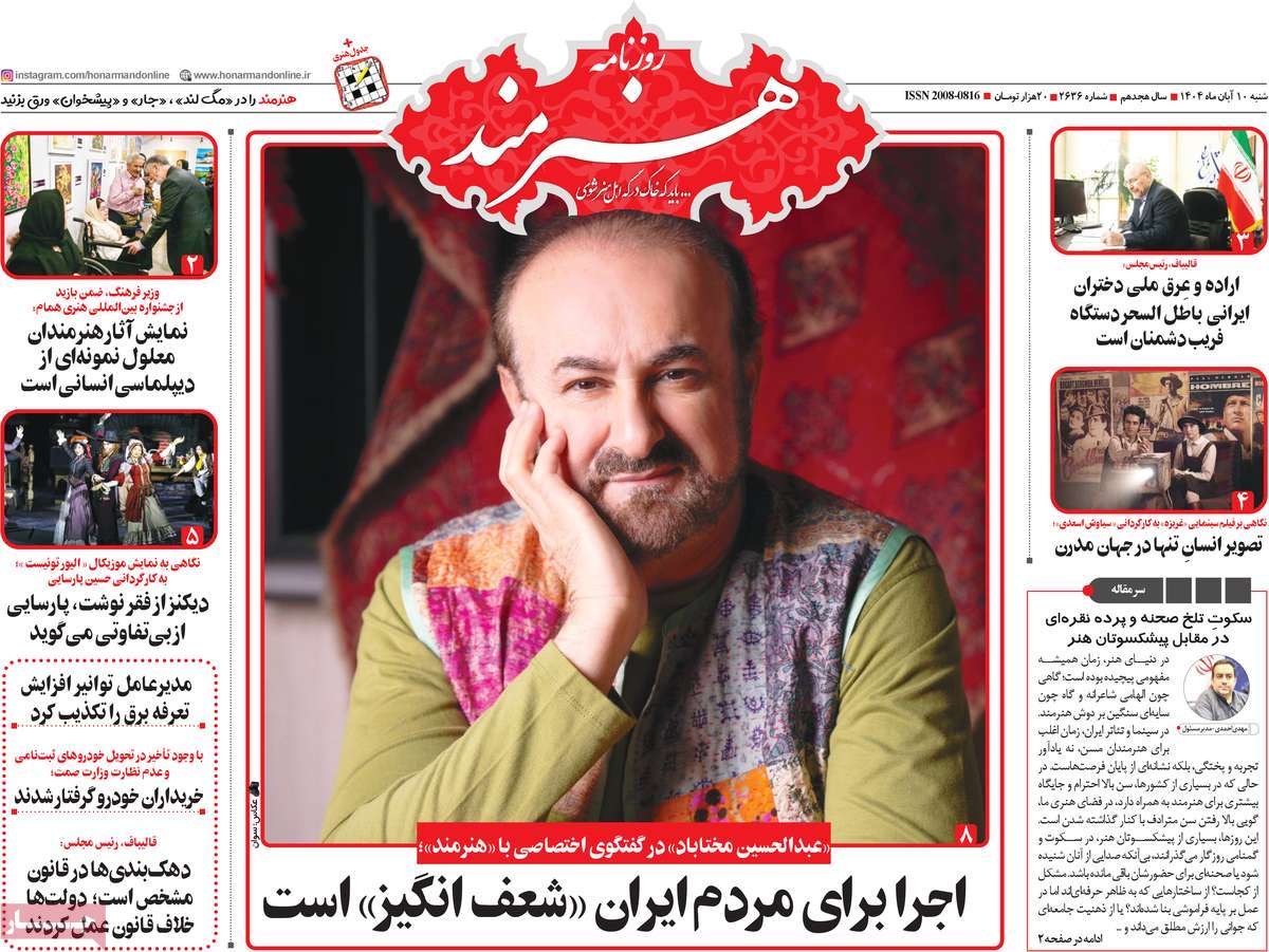 صفحه نخست روزنامههای شنبه ۱۰ آبان ۱۴۰۴