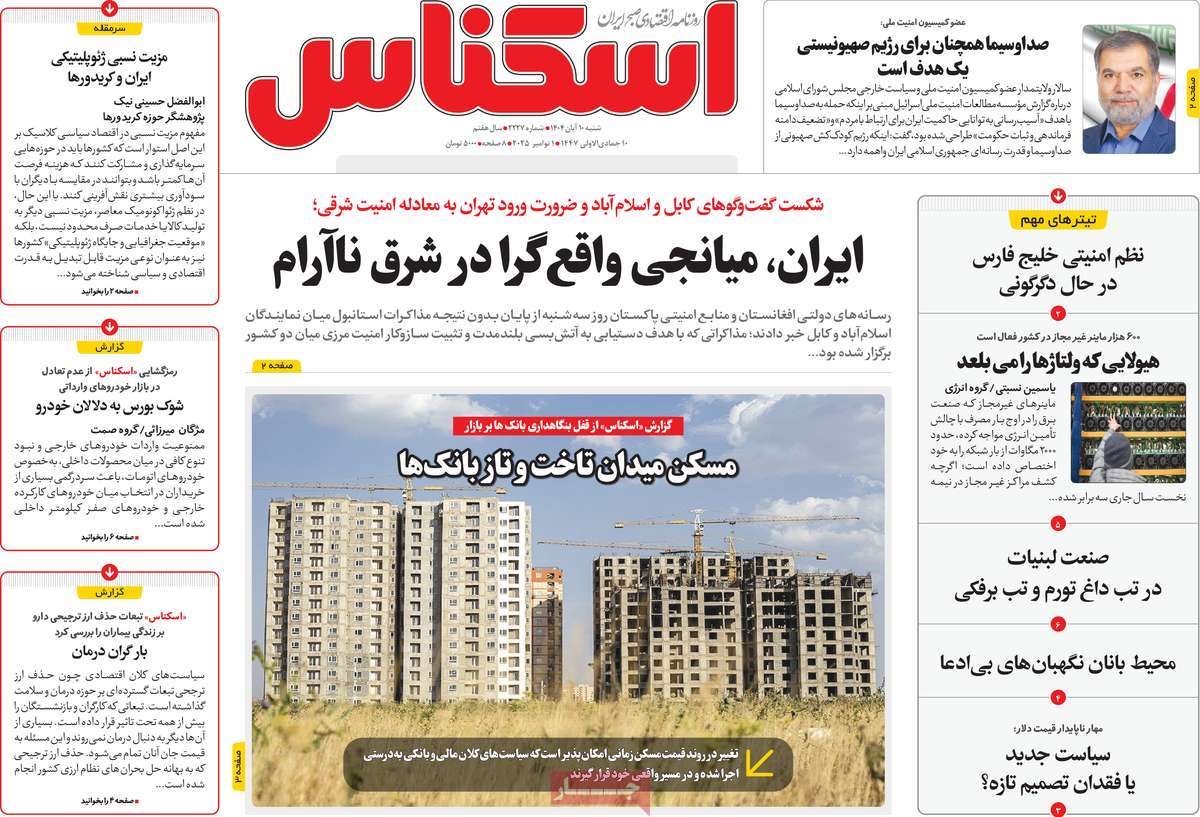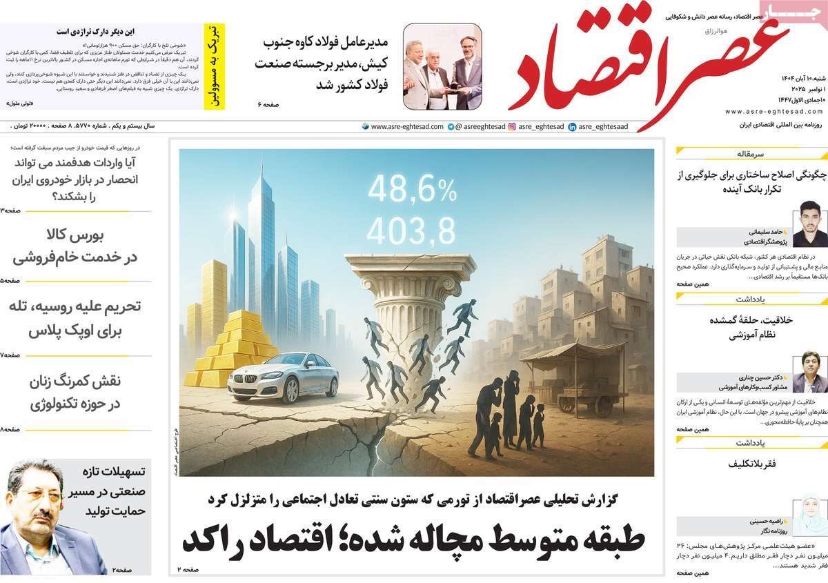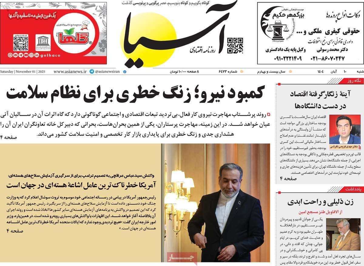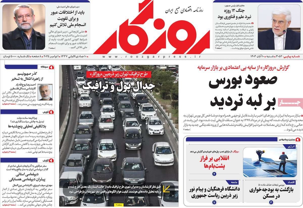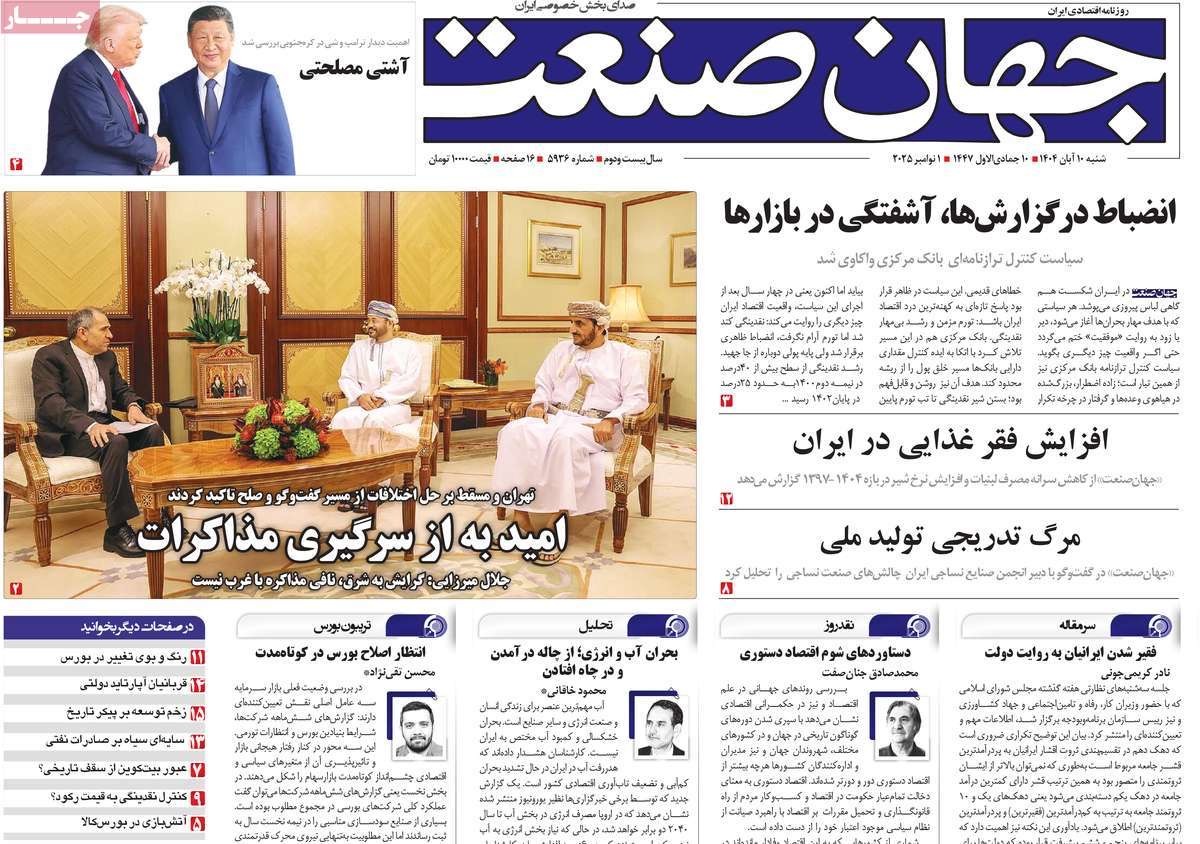 صفحه نخست روزنامههای شنبه ۱۰ آبان ۱۴۰۴