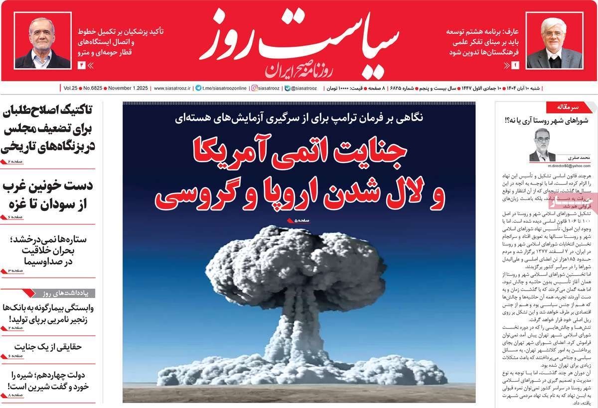 صفحه نخست روزنامههای شنبه ۱۰ آبان ۱۴۰۴ را که به موقعیتنشناسی سیاسی، سیاست ایران بر مدار اتحاد مقدس، تخت جمشید در آستانه فروپاشی و مهمترین رویدادهای ورزشی پرداختهاند؛ در ادامه مشاهده میکنید.