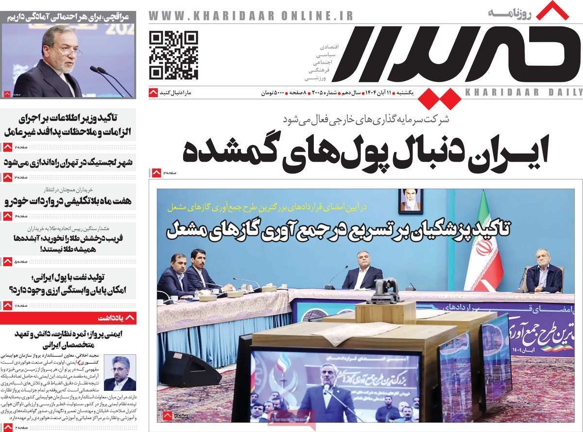 صفحه نخست روزنامههای یکشنبه ۱۱ آبان ۱۴۰۴
