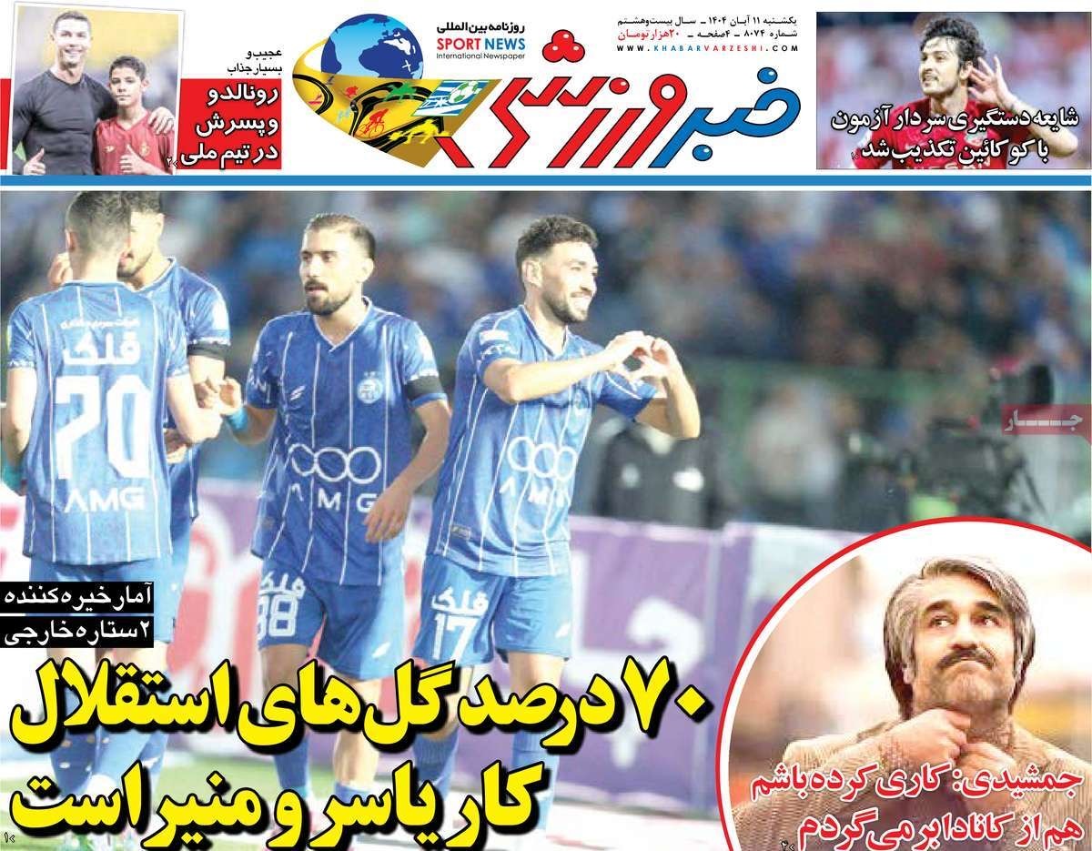 صفحه نخست روزنامههای یکشنبه ۱۱ آبان ۱۴۰۴ را که به علیه فیکنیوزها، ایران به دنبال پولهای گمشده، امنیتی نکردن جامعه و مهمترین رویدادهای ورزشی پرداختهاند؛ در ادامه مشاهده میکنید.