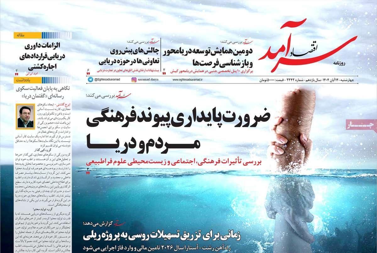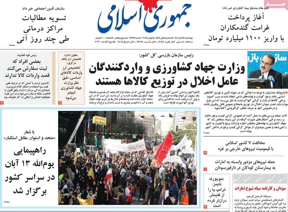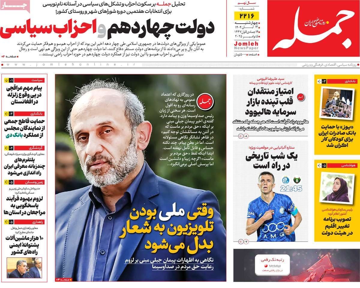 صفحه نخست روزنامههای چهارشنبه ۱۴ آبان ۱۴۰۴