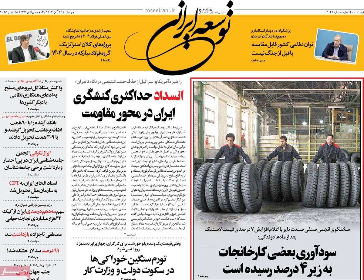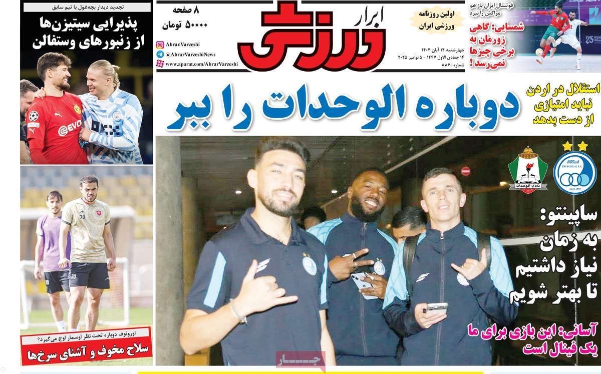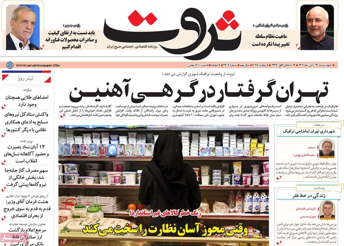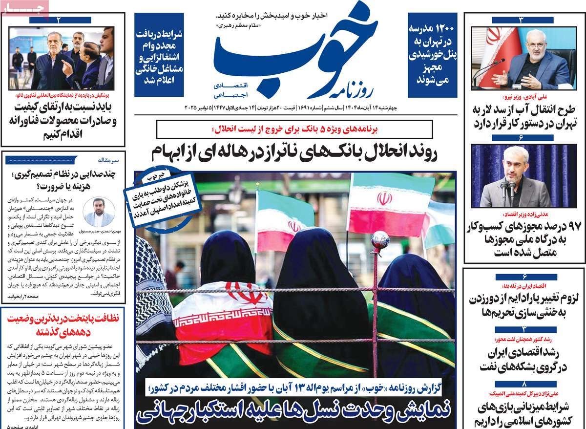 صفحه نخست روزنامههای چهارشنبه ۱۴ آبان ۱۴۰۴